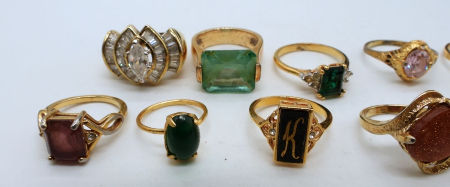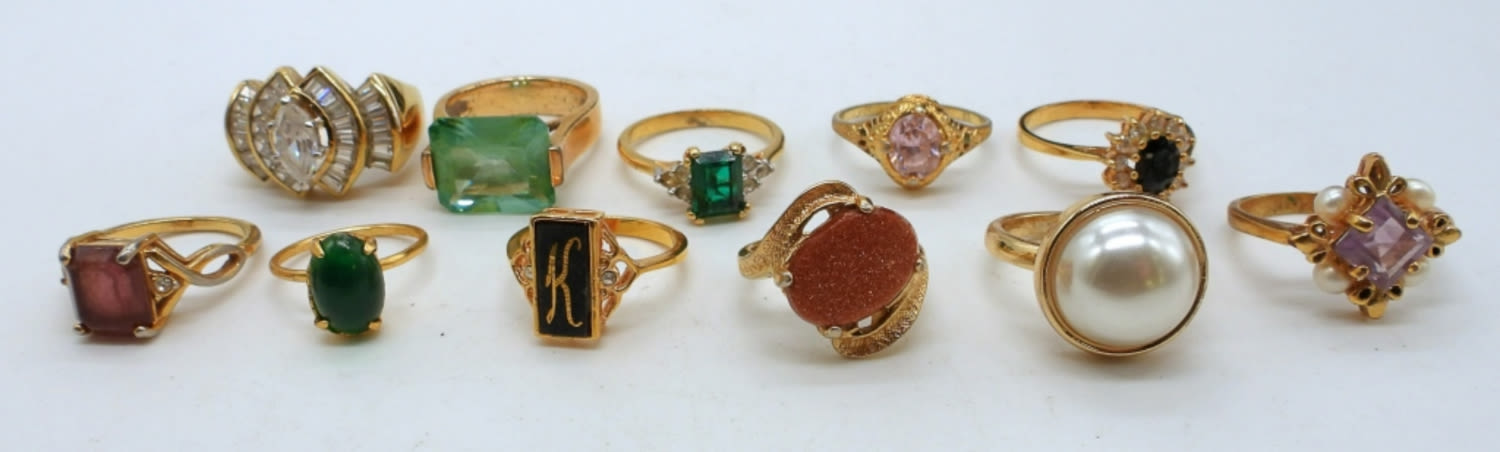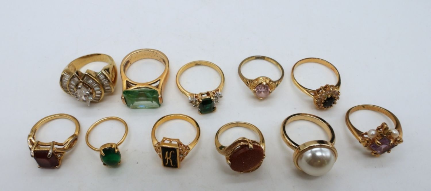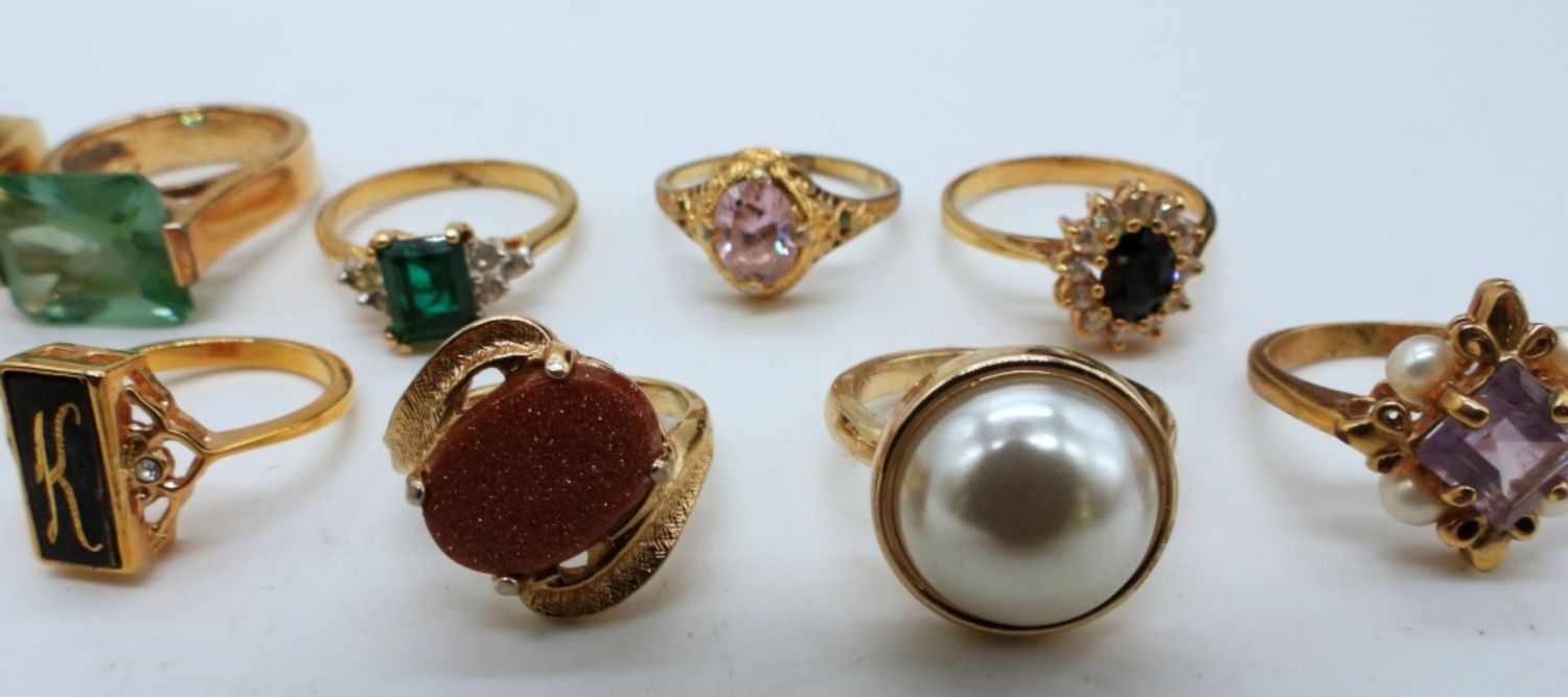 ALL DIFFERENT STYLES, FAUX PEARL, GREEN STONES, PURPLE, CLEAR, BLACK ONYX STONES, SIZES- 4, 5, 6(2), 7(2), 7 1/2, 8(3), 9