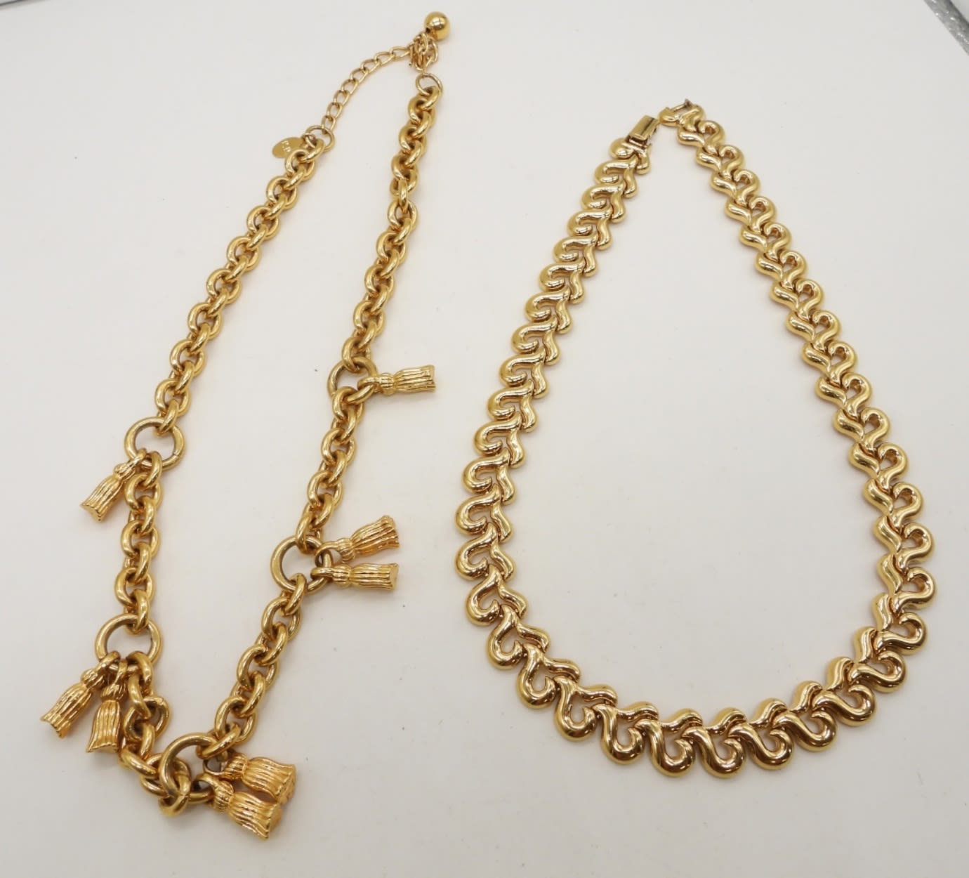 16IN LONG HEART NECKLACE, OPEN CLASP, 19IN LONG, ADJUSTABLE, GOLD TONE CHARM TASSELS