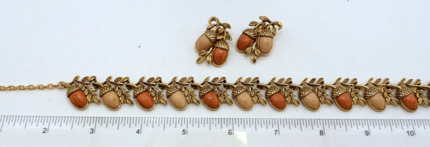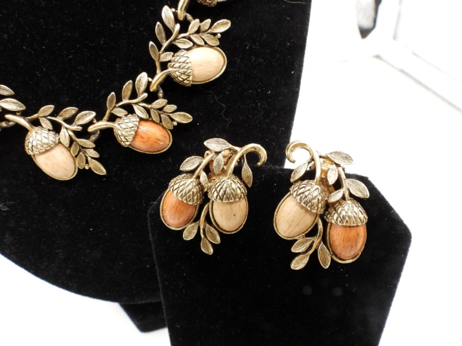 ACORN NECKLACE W/ MATCHING CLIP-ON EARRINGS