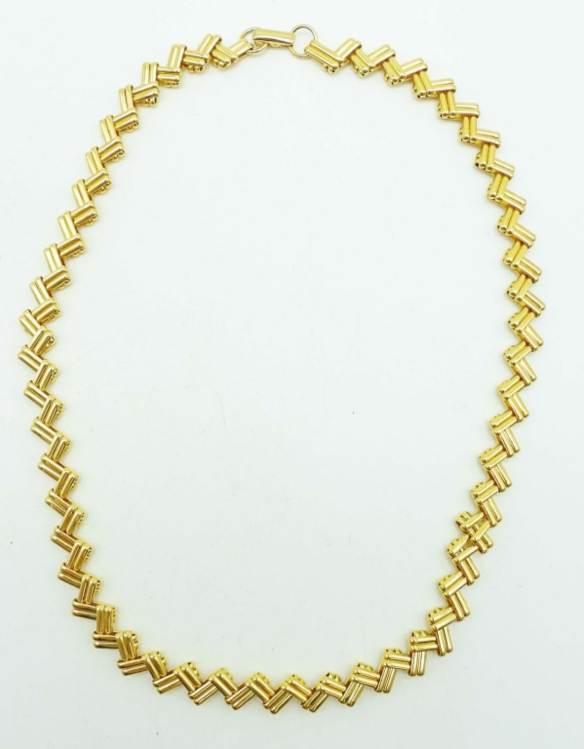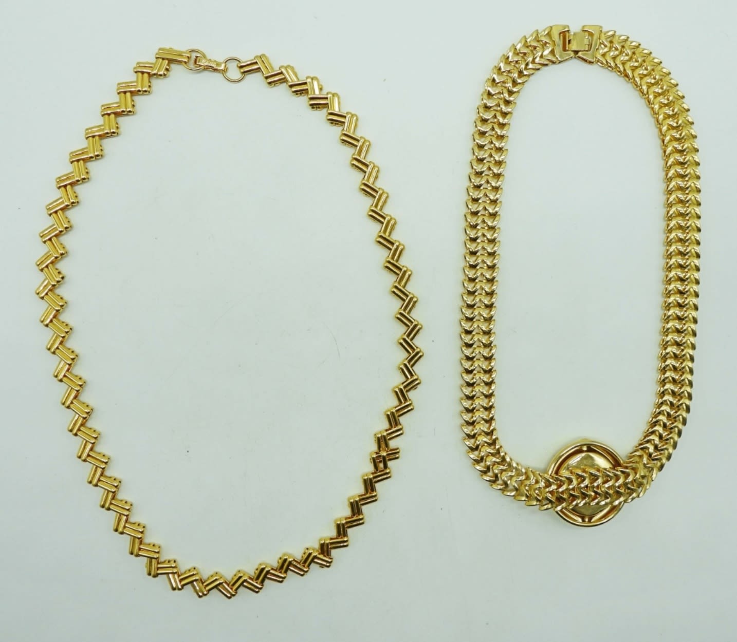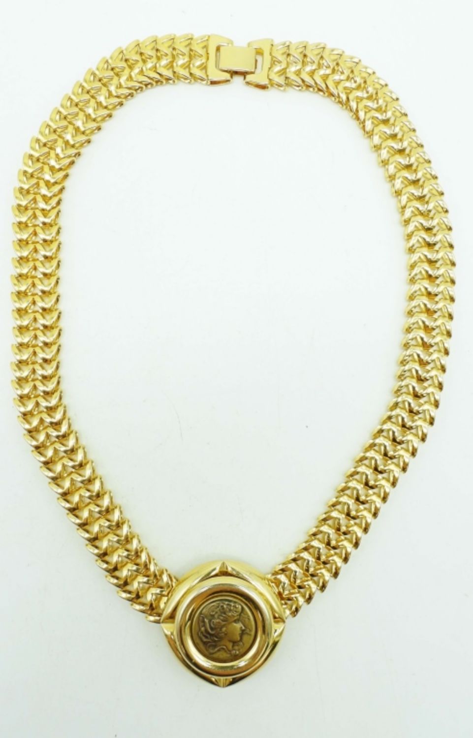 18IN LONG GOLD TONE W/ OPEN BOX CLASP AVON BRAND AND STAMPED, CAMEO STYLE CHOKER 16IN LONG