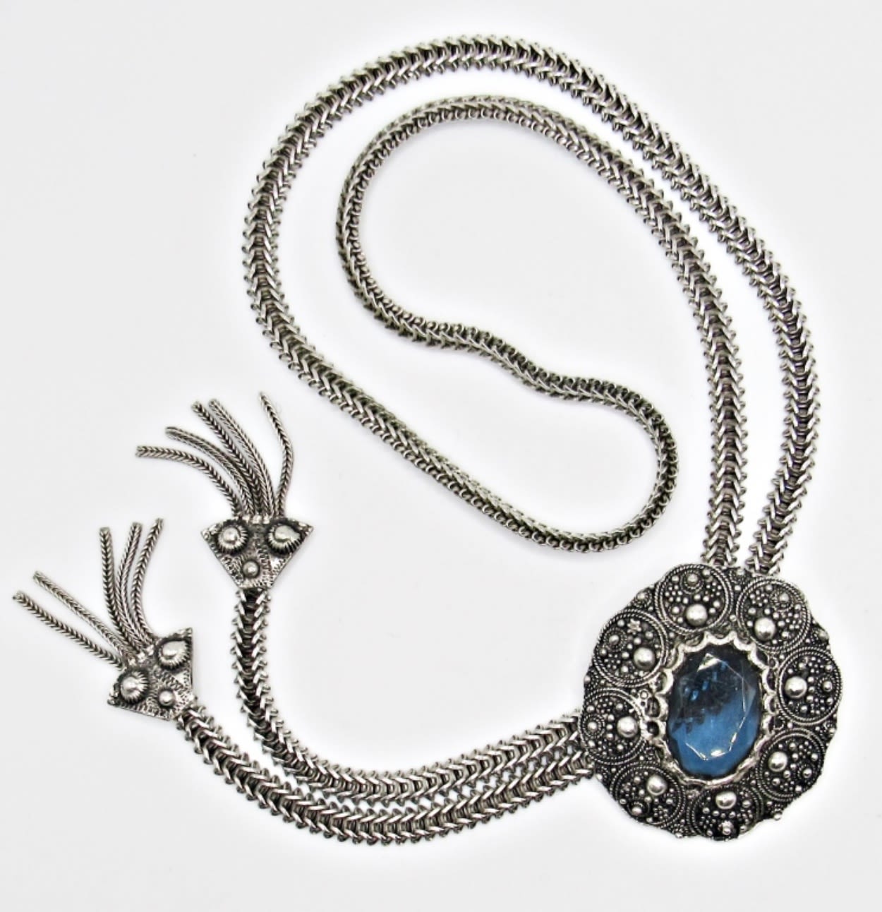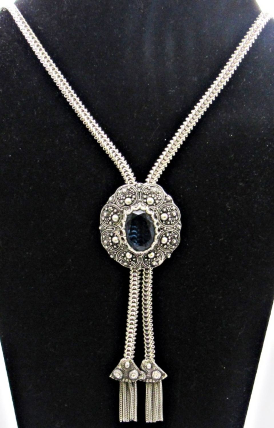 DESIGN NECKLACE WITH DARK BLUE STONE