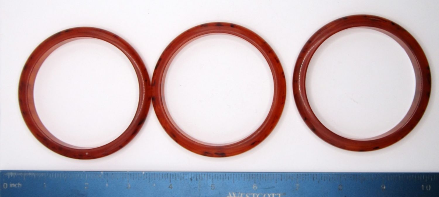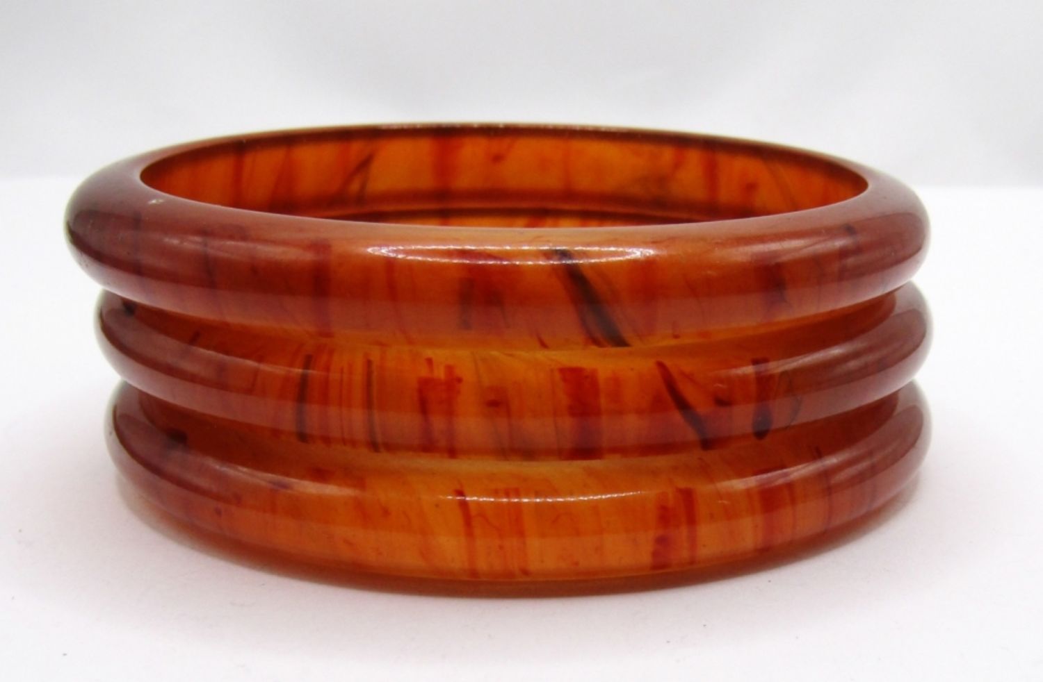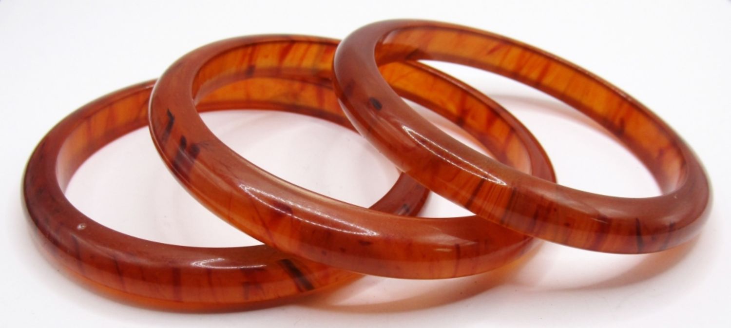 ORANGE COLOR PLASTIC BANGLE BRACELETS WITH DARKER COLORS WITHIN