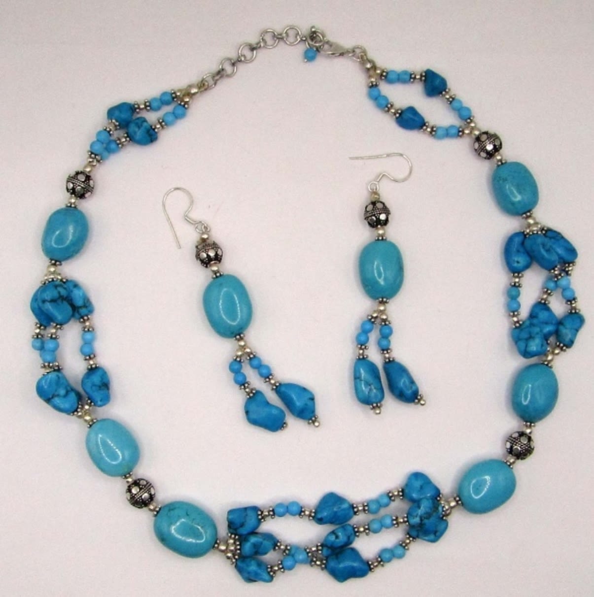 NECKLACE WITH MATCHING PAIR OF PIERCED DANGLY EARRINGS