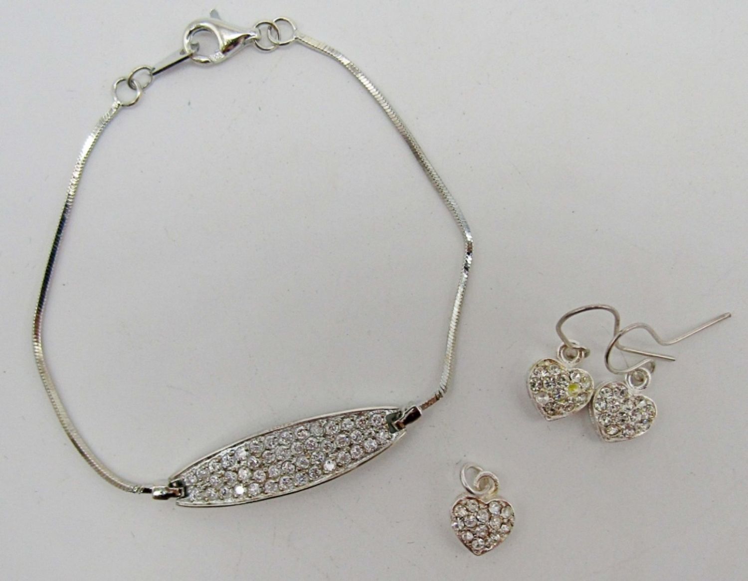 BRACELET, HEART PENDANT & PIERCED EARRINGS (1) EARRING MISSING STONE