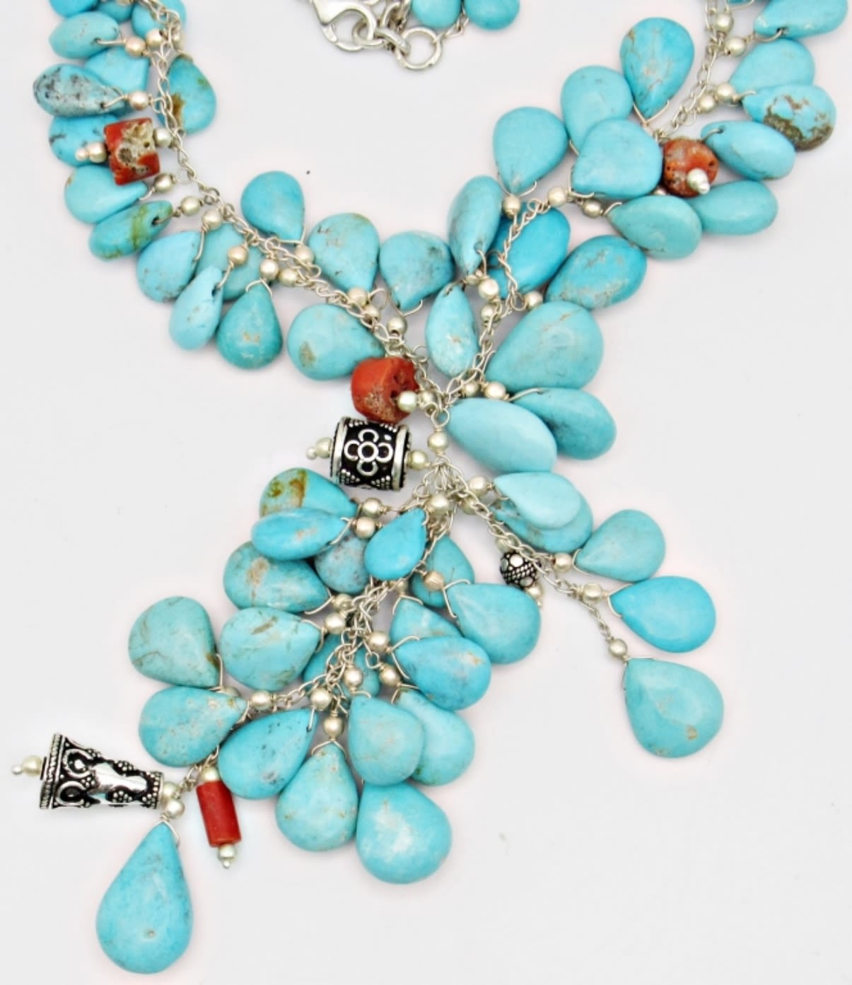 LOADED WITH TURQUISE BEAD CHARMS & RED CORAL ACCENTS