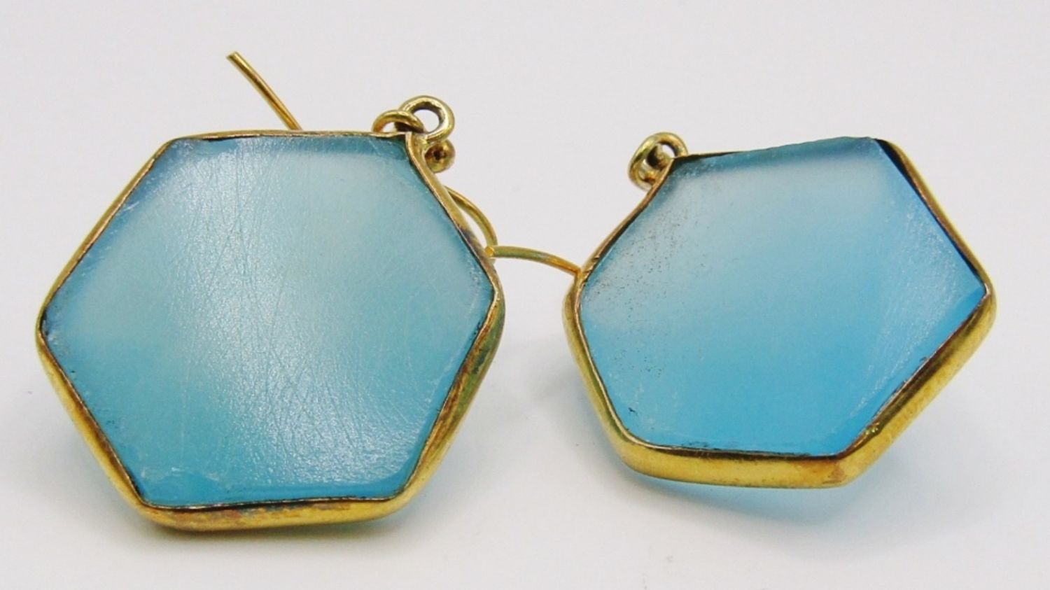 EARRINGS WITH 3-D GEOMETRIC TEAL CENTER