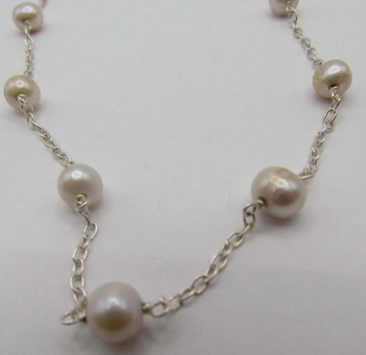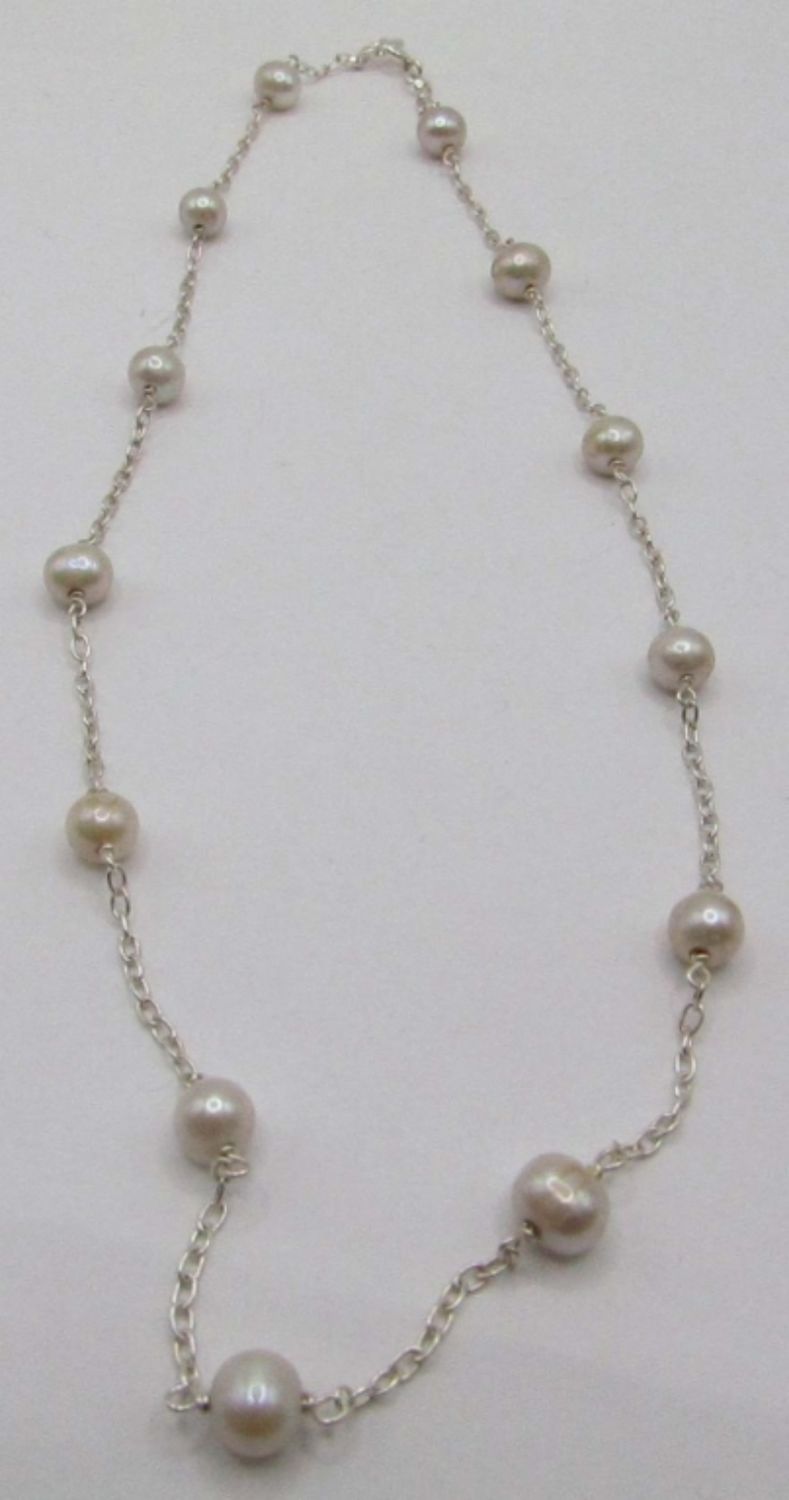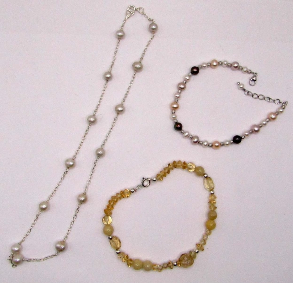 NECKLACE 15.5″- STERLING AND BEADED JEWELRY- YELLOW AND PEARL LIKE BEADS- ALL NEW 13 DWT