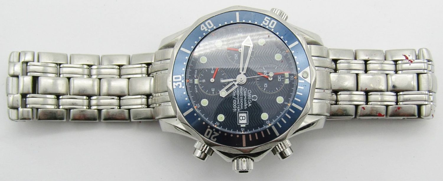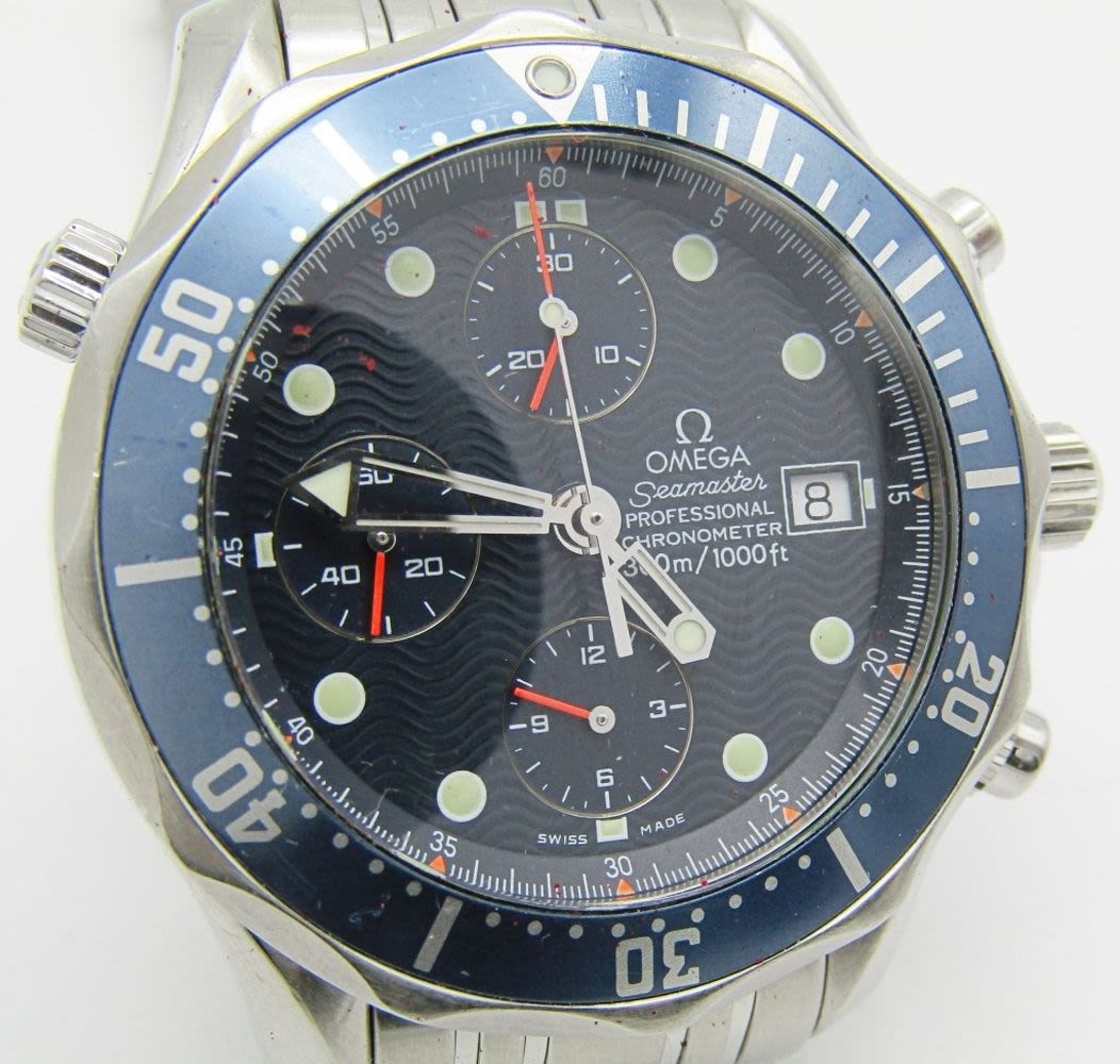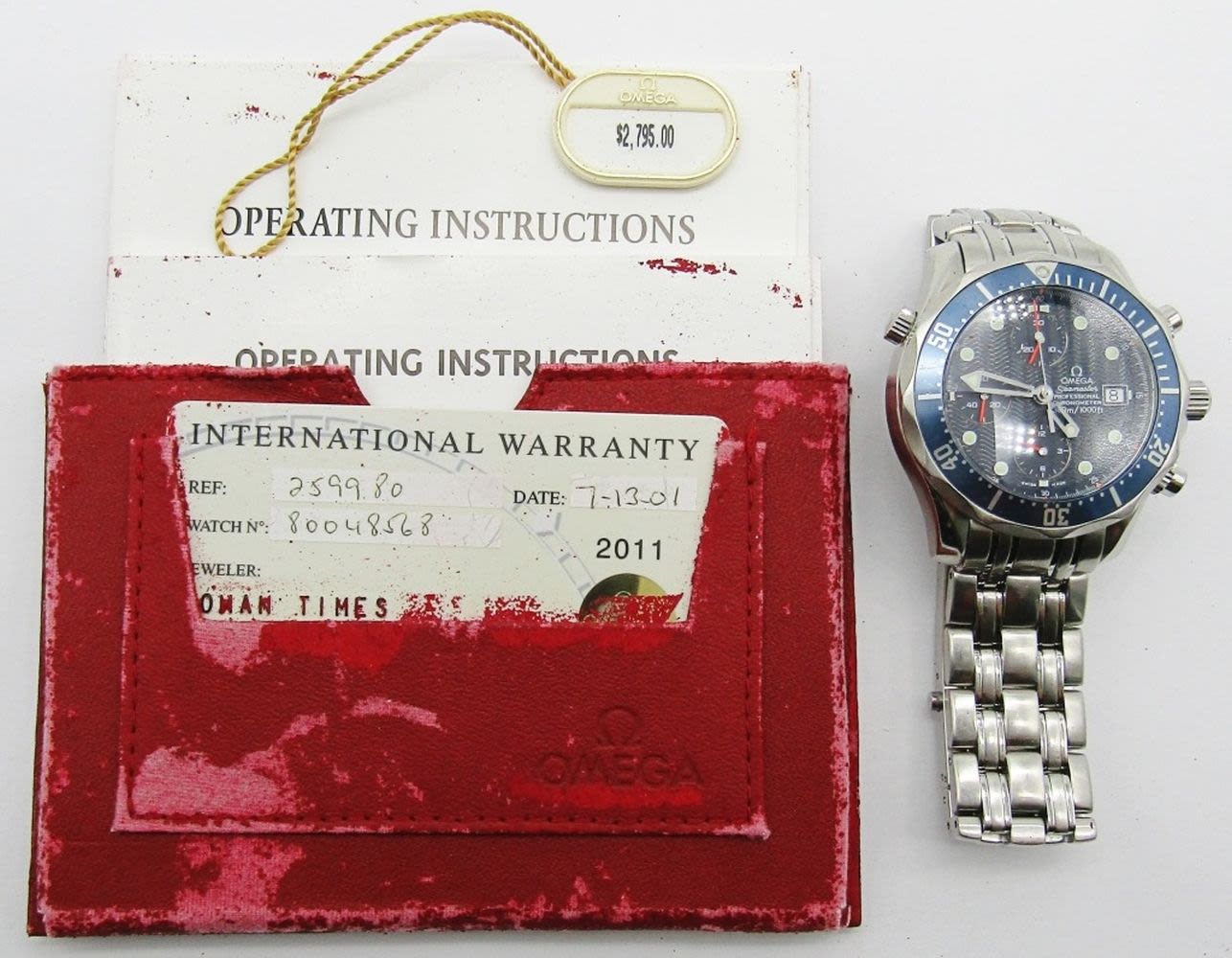 Ref. 2599.80, Perfect Blue Wave Dial & Hands. Cal 1164 Automatic Movement. 42 mm Stainless Screw Back Case With Blue Bezel & Omega Bracelet. Complete with Books, Warranty Card & Hang Tag.