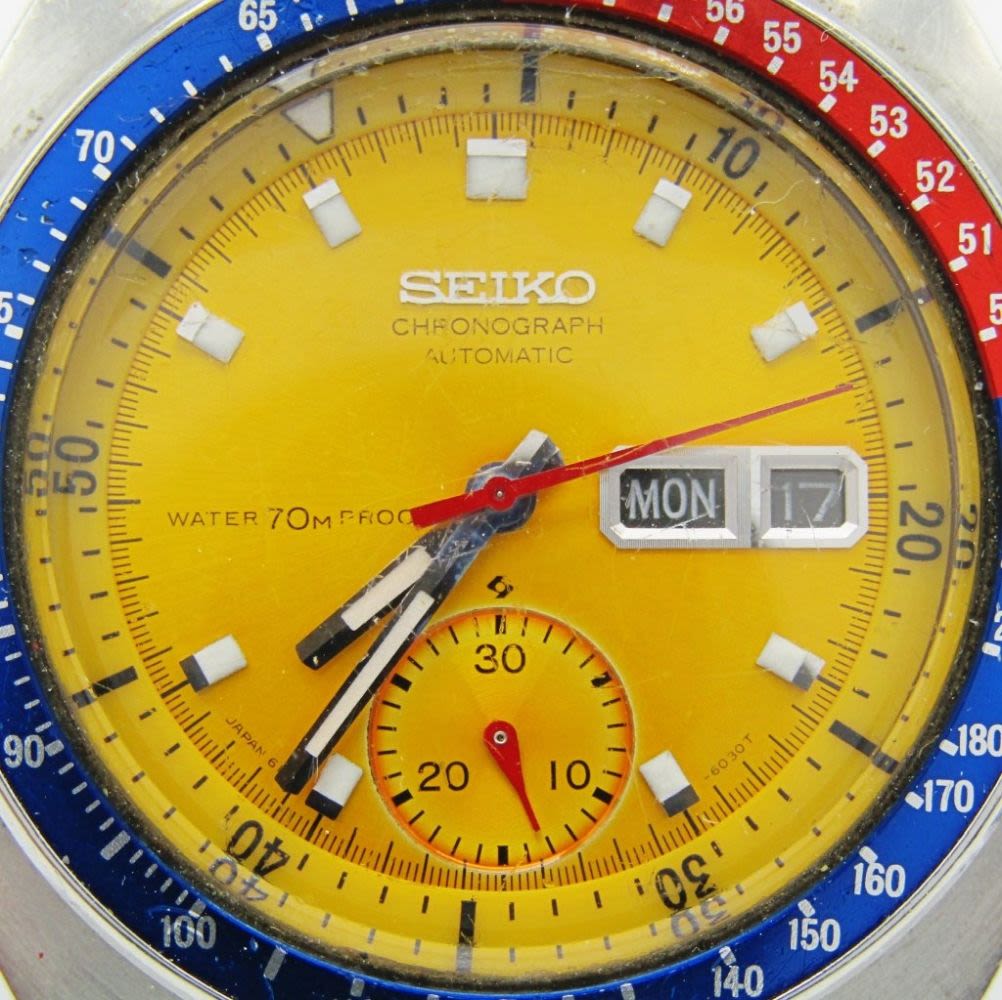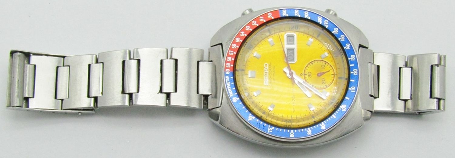Ref 6139-6001, Nice Original Yellow Waterproof Dial, Excellent Pepsi Bezel. 41mm Diameter, Stainless Seiko Bracelet.