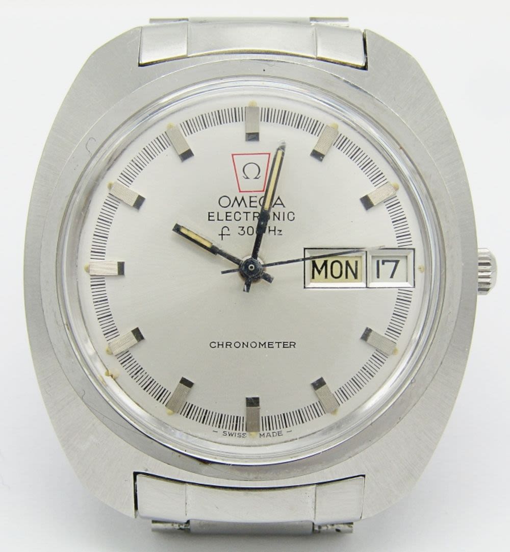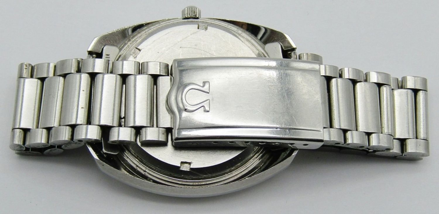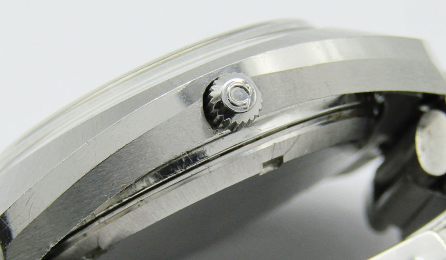 Perfect Silvered Dial With Day/Date. Stainless Steel Screw Back Case with Signed Crown. 38mm Diameter. Omega 1260 Tuning Fork Movement with Fresh Battery. Case Reference 198.031, Genuine Omega Stainless Bracelet.