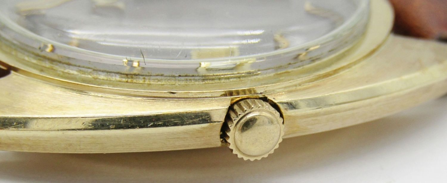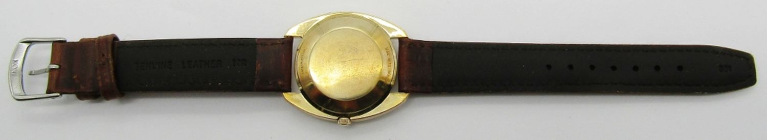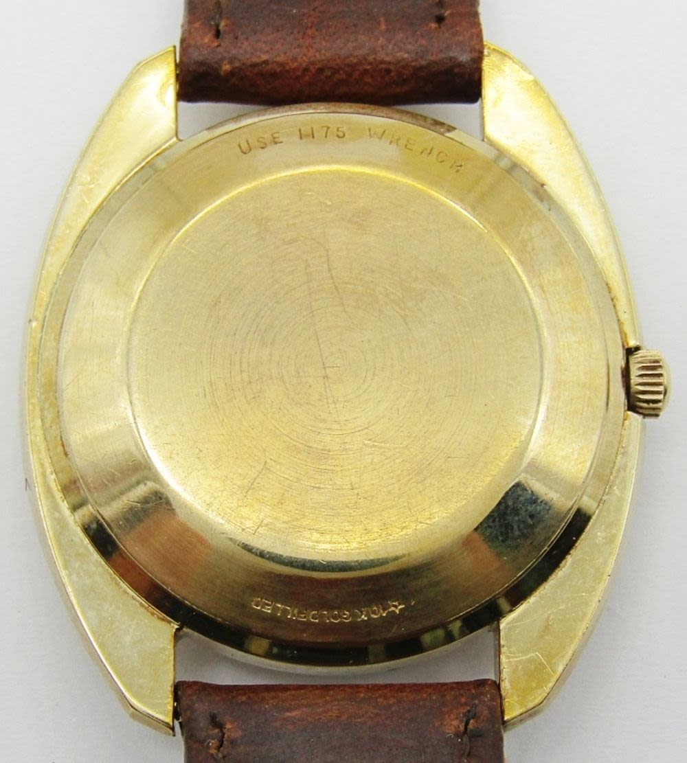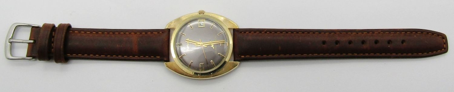 Excellent Original Gray Dial. Gold Filled Case with No Wear-Thru. 35mm, Triple Signed, 17 Jewel Cal 431 Automatic Movement. New Strap.
