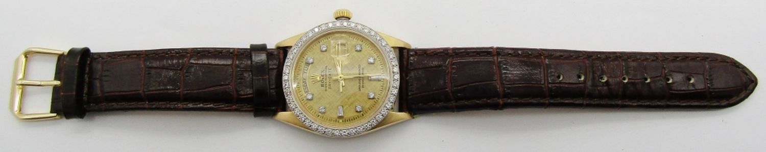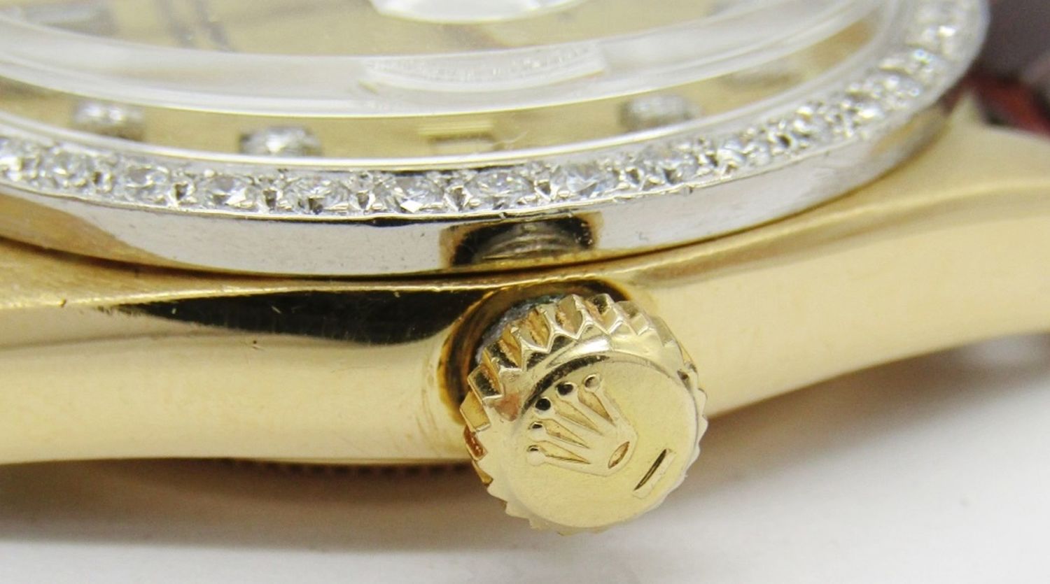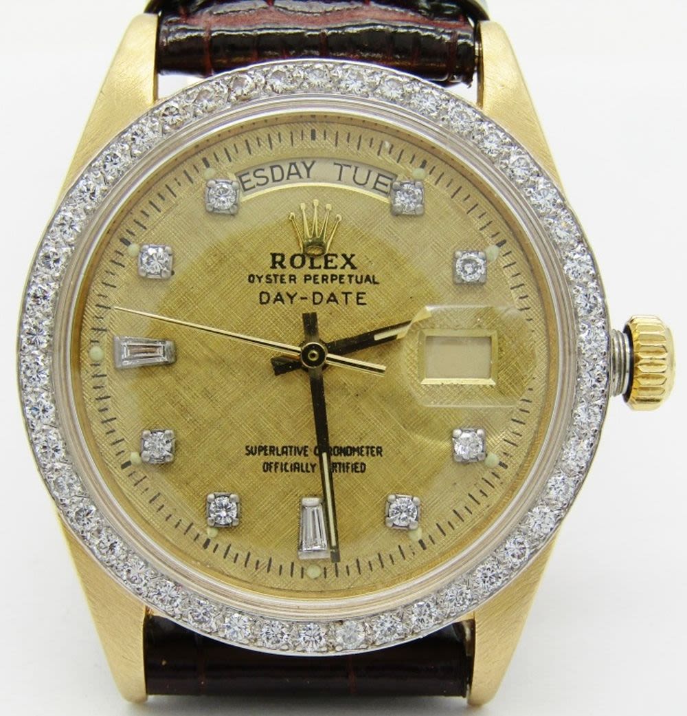 Aftermarket Diamond Dial And Bezel. 26 Jewel Cal 1556 Movement. 36mm Diameter. New Strap & Crystal.