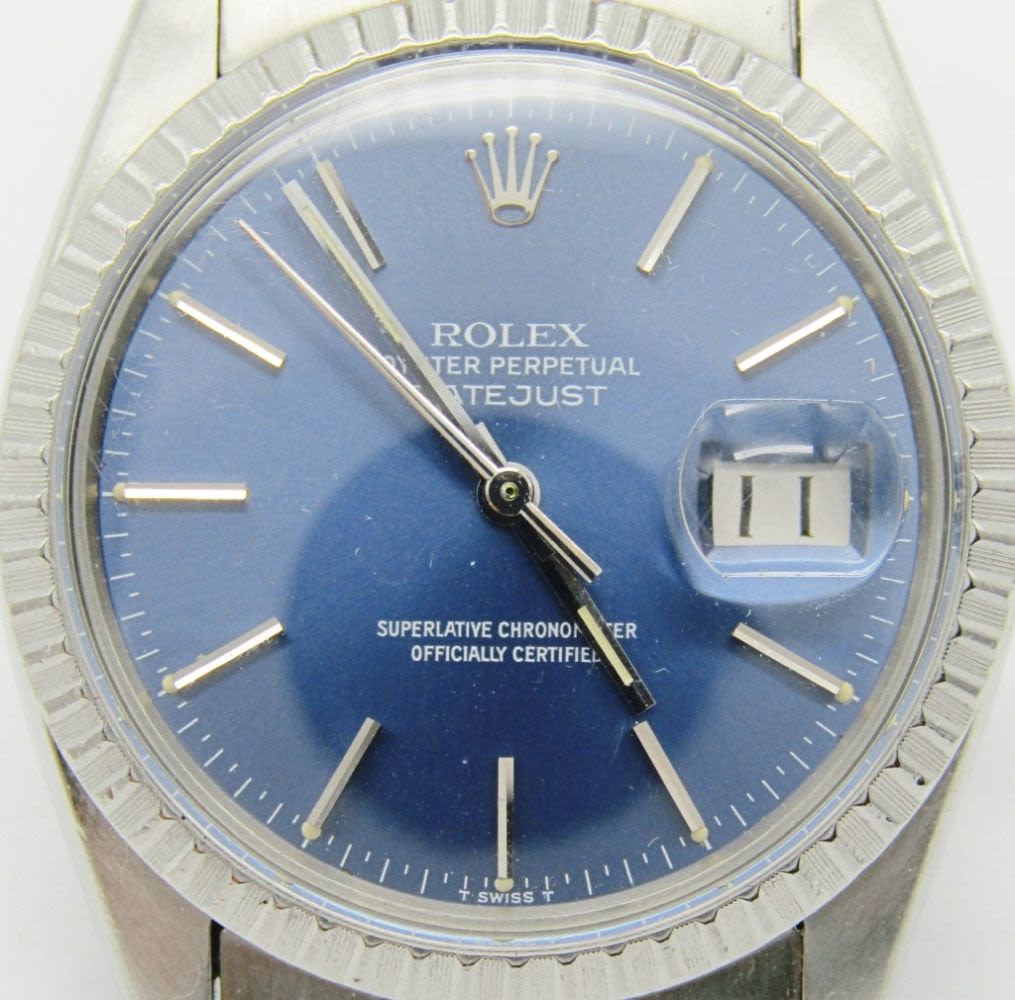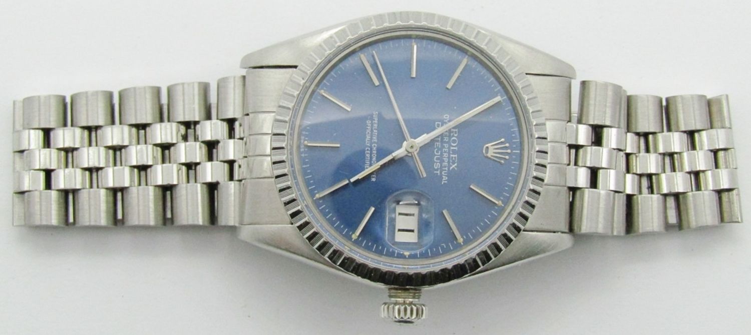 Reference 16030. Perfect Original Blue Dial. Jubilee Style Bracelet. Cal 3035 27 Jewel Automatic Movement. Quickset Date Feature. 36mm Diameter. New Crystal – Plastic. Circ 1980.