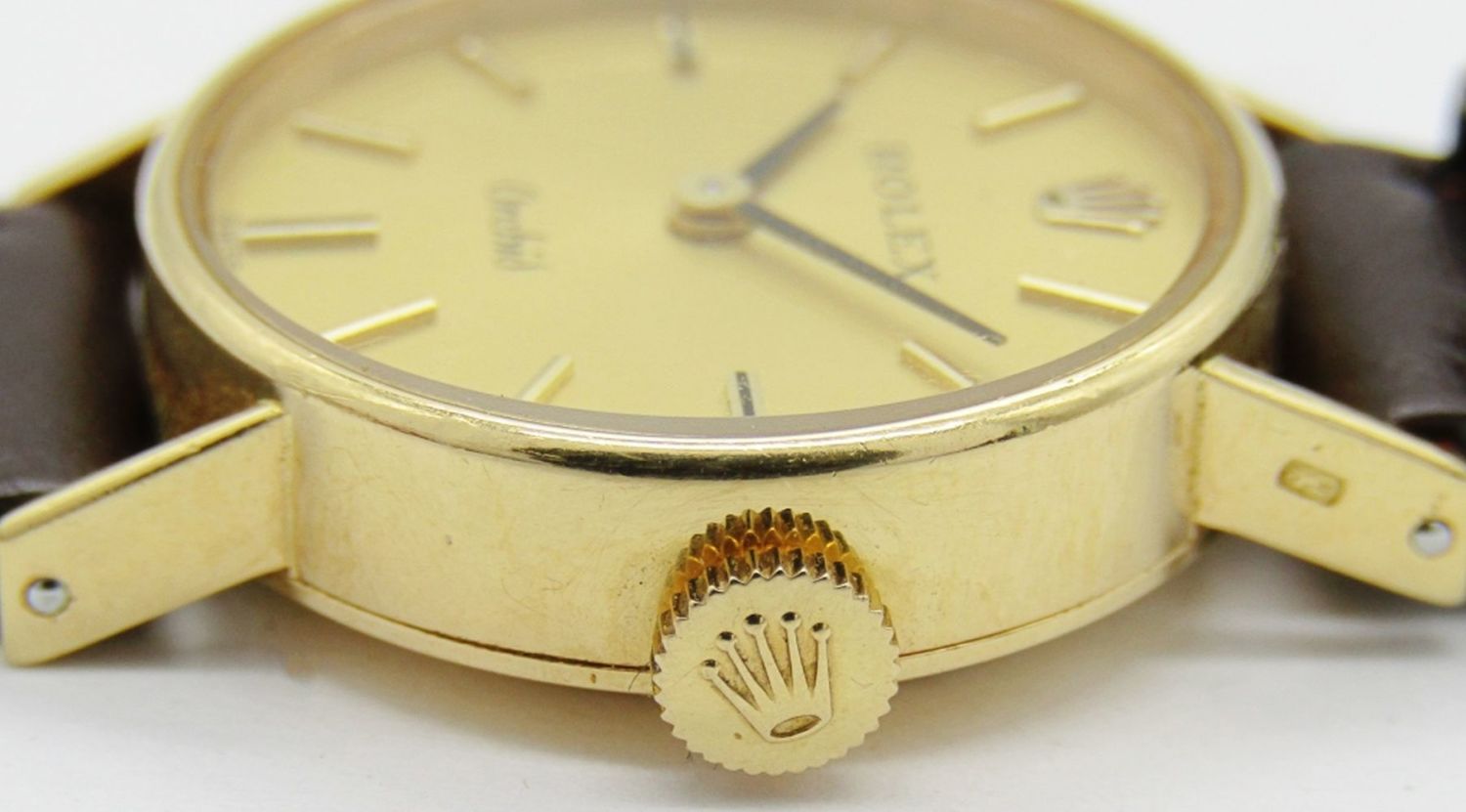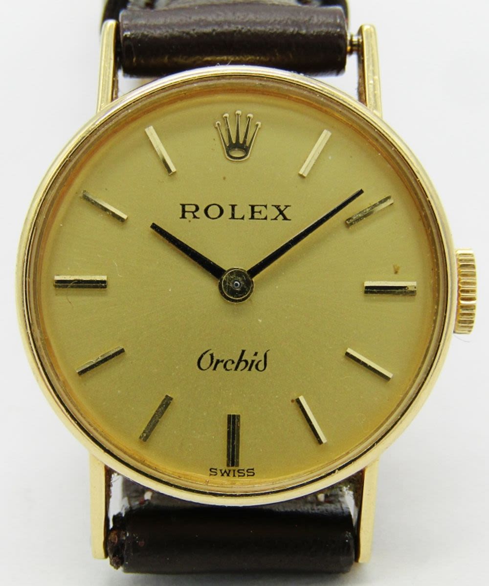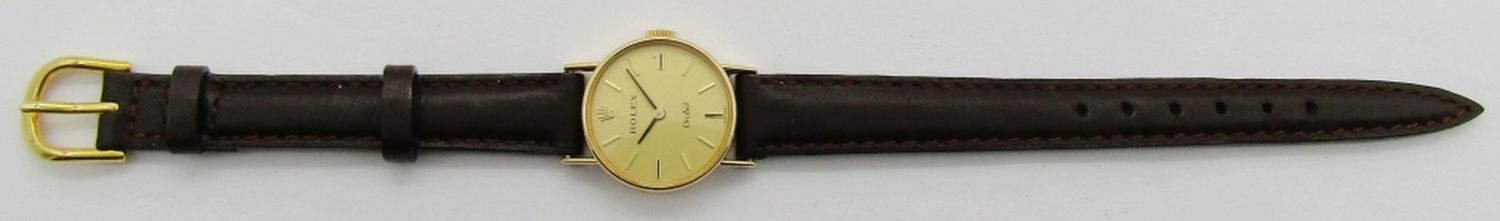 Perfect Original Champagne Dial. 21mm Case with Signed Crown. 18kt Yellow Gold Snapback Case. 18 Jewel Cal 1400 Movement. Case Reference 2671 9. Complete with a new strap.