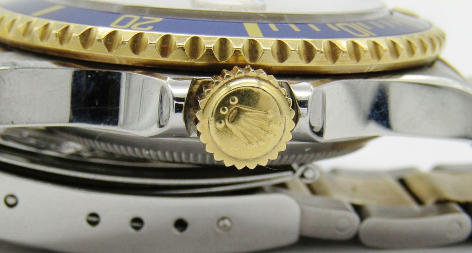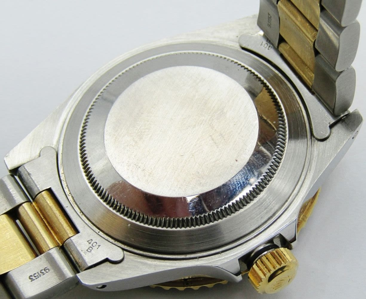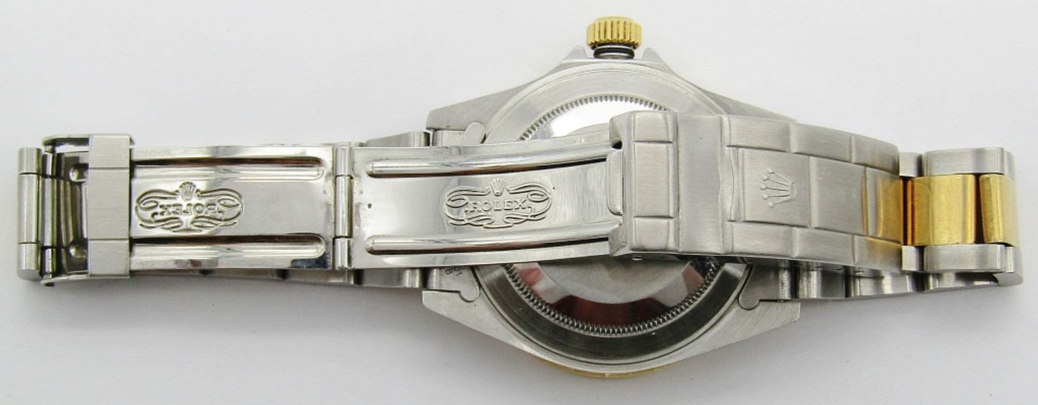 18kt Yellow Gold & Stainless Steel. 40mm Diameter. Perfect Silver Diamond & Sapphire Serti Dial. Circ. 1990 Eseries.