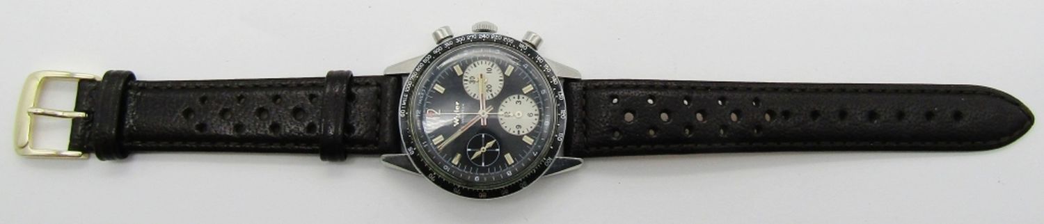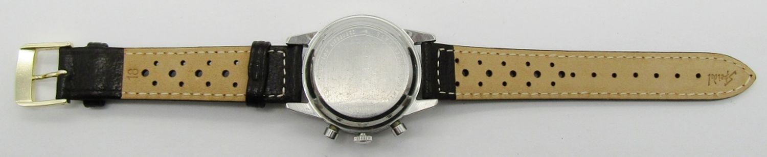 Perfect Black Dial & Hands. 37mm Diameter. Valjoux 72 Base Movement. 1502/5-1291. New Black Strap.