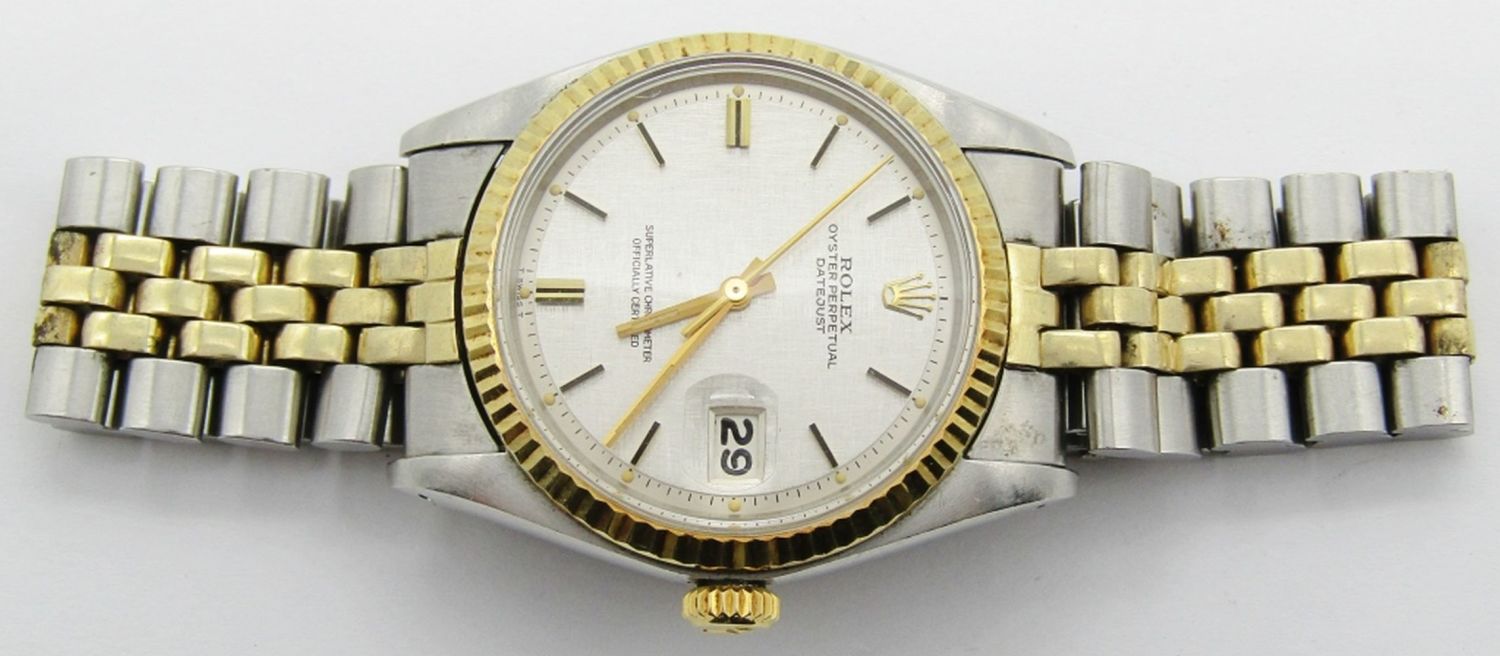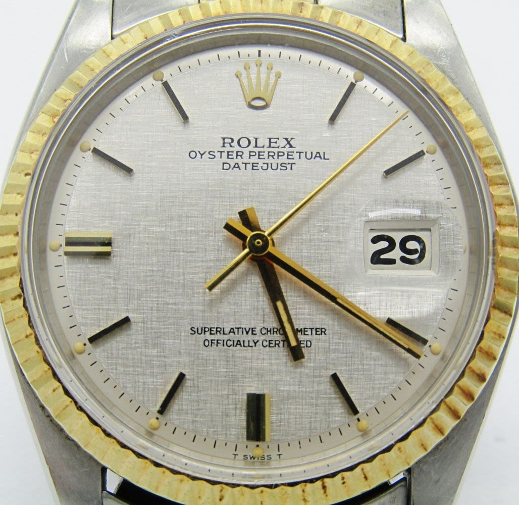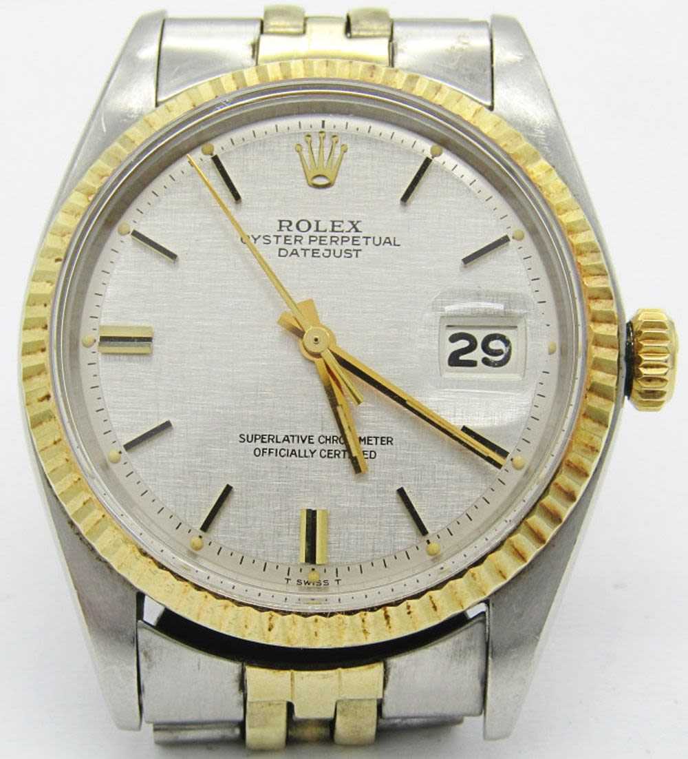 Original Nice Linen Dial. 14kt/Steel JB Jubilee Bracelet. Cal 1570, 20 Jewel Auto Movement. 36mm. Case Ref 1601. Circ 1977. Complete With Papers, Hang Tag, and Booklet.