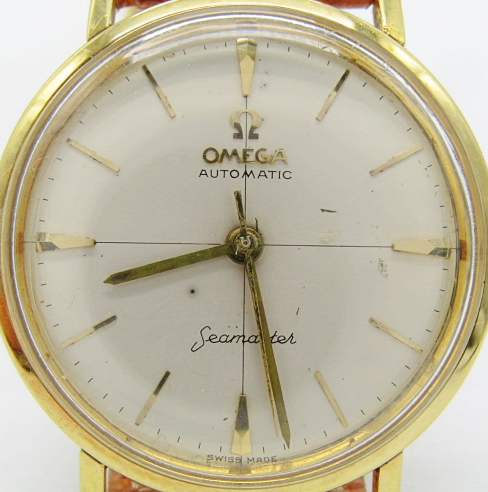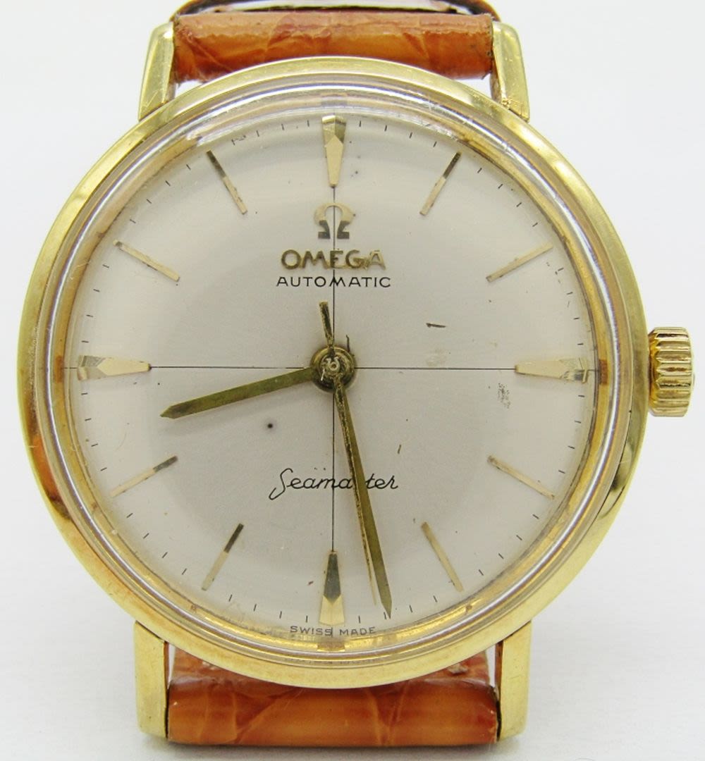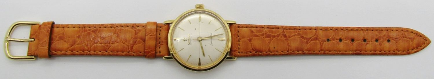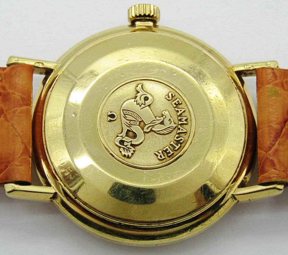 Original Silvered Dial. 18kt Gold Case With Seamaster Logo and Signed Crown. 34mm Diameter. 24 Jewel Cal 552 Automatic Movement. Case Reference 14745 5CL. New Strap.