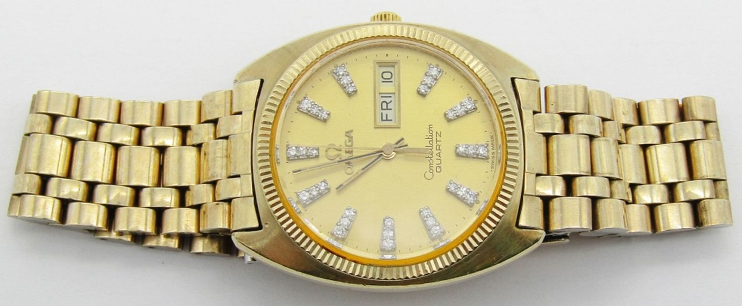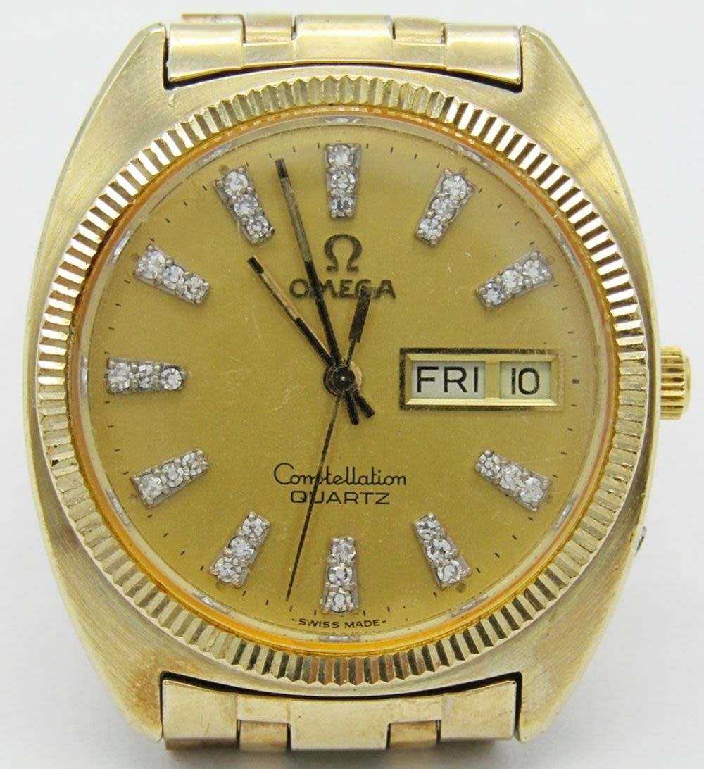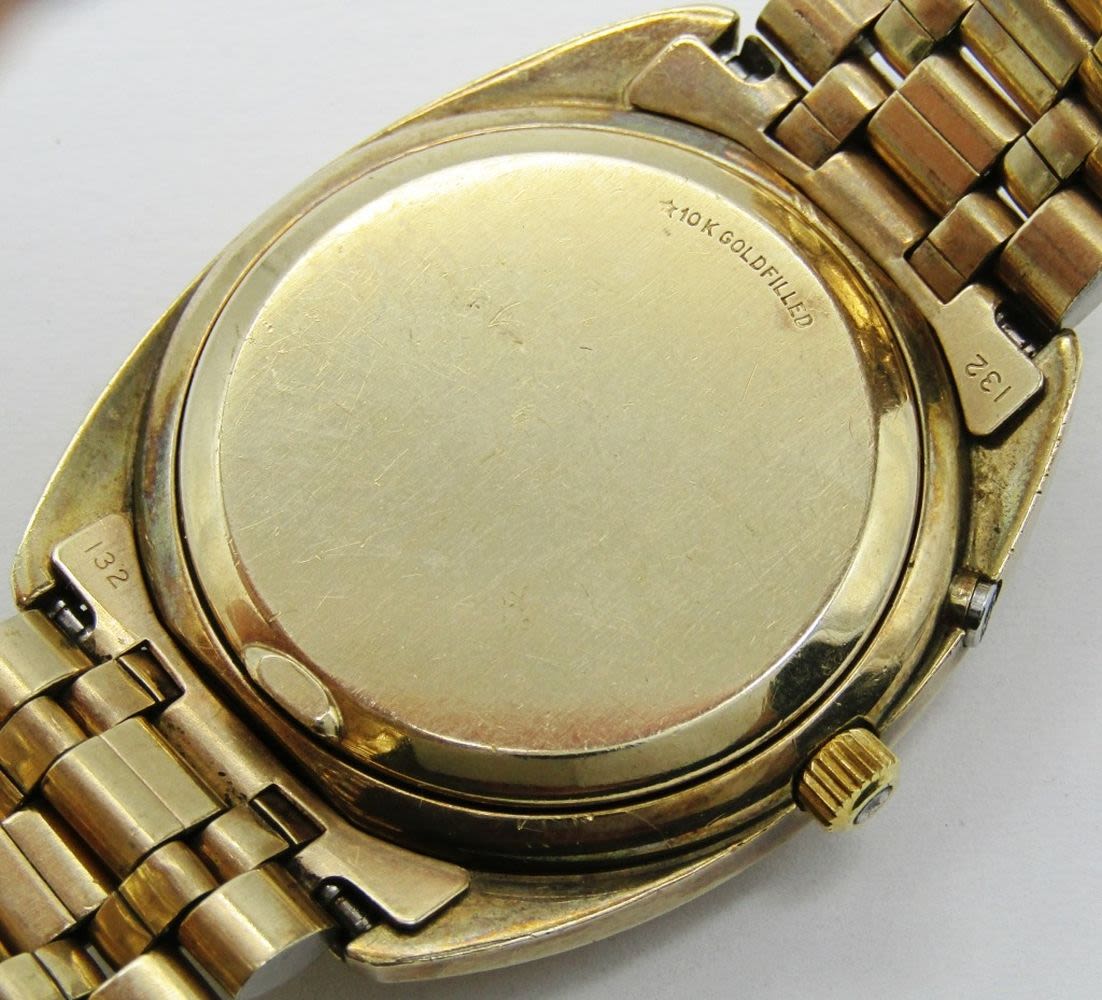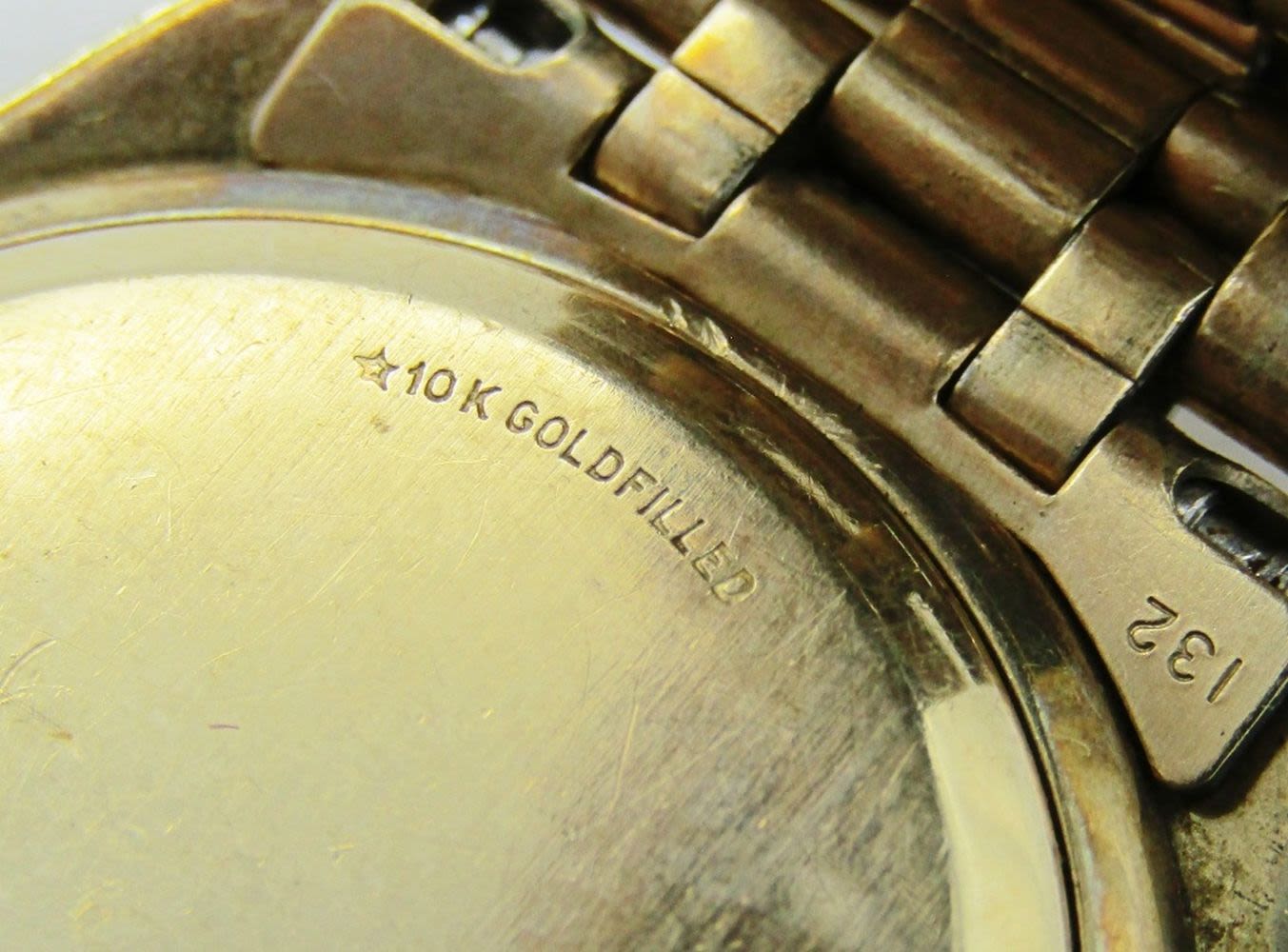 Perfect Original Champagne Dial With 33 Diamonds. Gold Filled Case and Bracelet (signed). 33mm Case Diameter With Sapphire Glass. Quartz Movement with Fresh Cell. This Watch is in Excellent Condition.