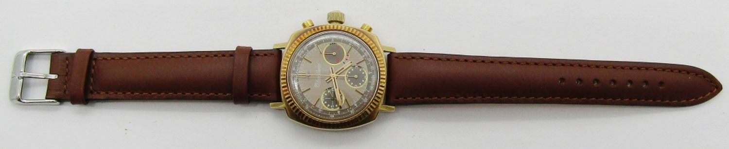 Perfect Original Dial & Hands. 37mm Cushion Case Features Screw Down Crown and Screw Back Case. Valjoux 72 Movement. Case With Wonderful Tarnish/Patina. New Strap. Complete With All Boxes, Instructions, Warranty, Ect.