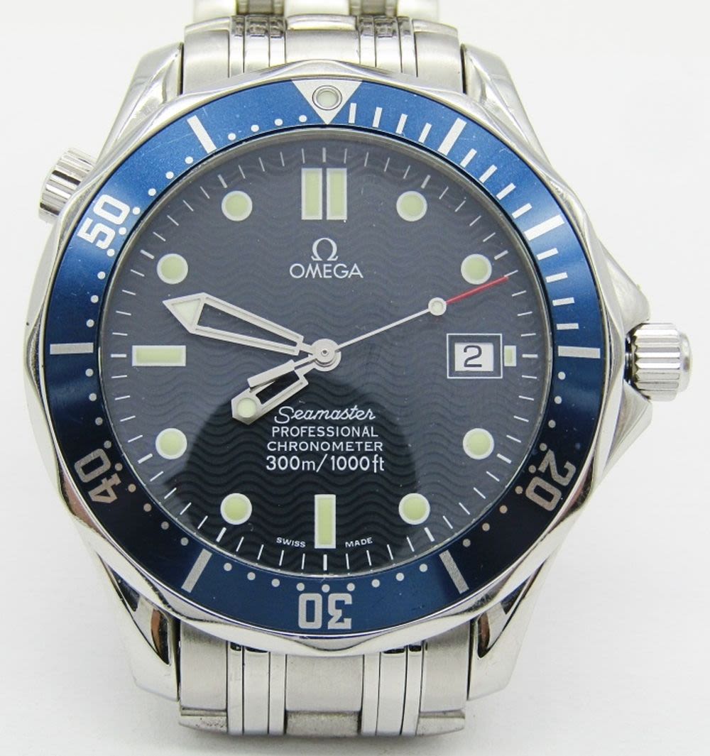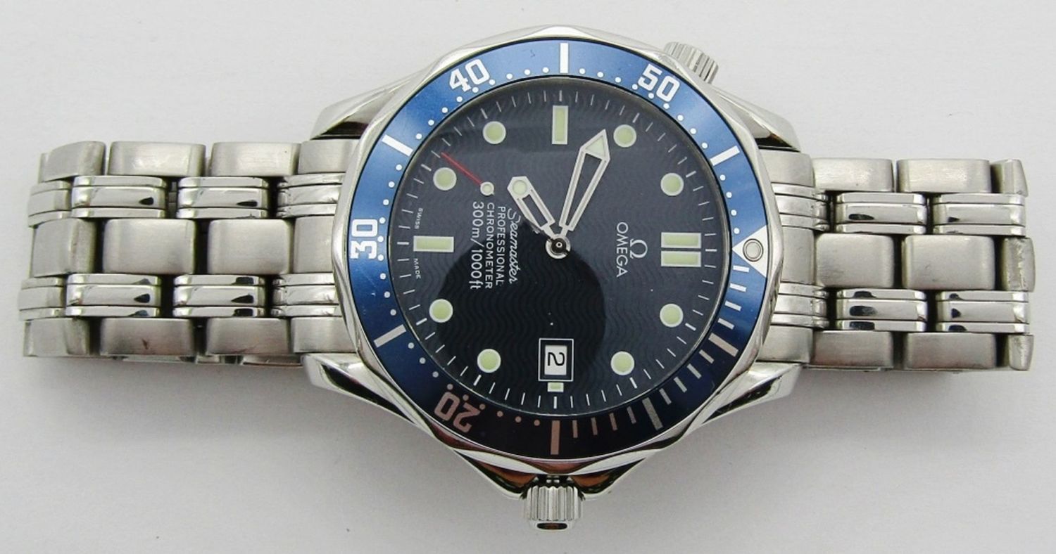Ref 2531.80 Perfect Blue Dial & Hands. Cal 1120 Automatic Mov’t. 41mm Stainless Screw Back Case With Blue Bezel And Omega Bracelet.