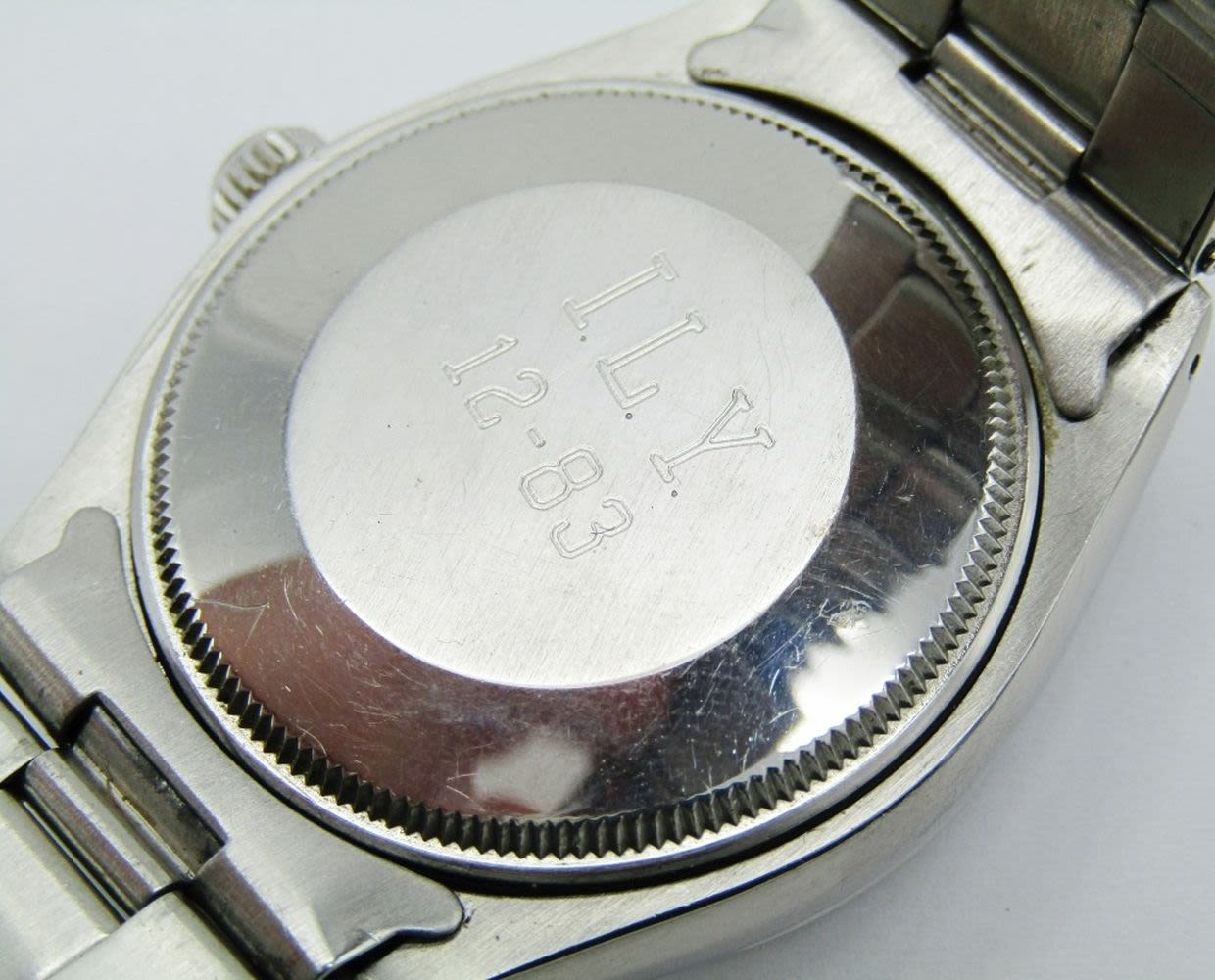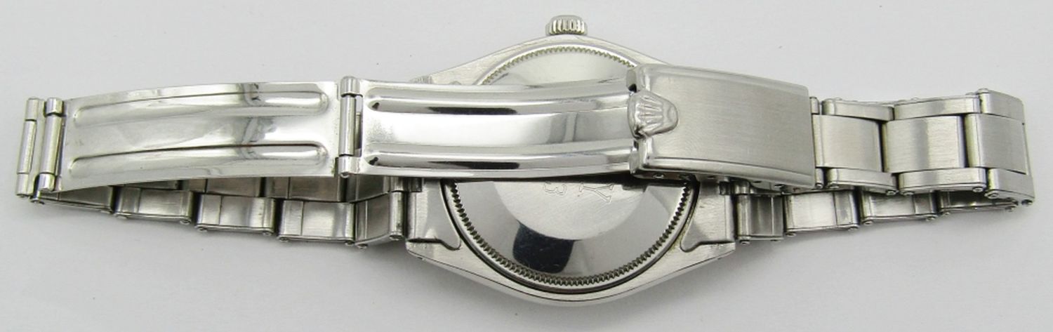 Perfect Original Black Dial. 26 Jewel Cal. 1520 Movement. 34mm Diameter. Circ 1982. Stainless Oyster Bracelet With Date Code 78. Case Back Engraved With Initials And 12-83.