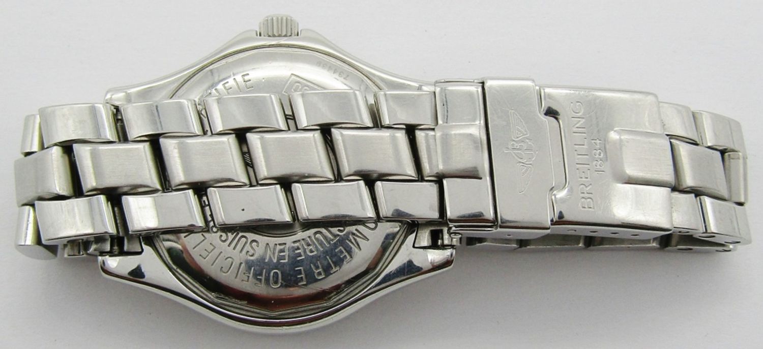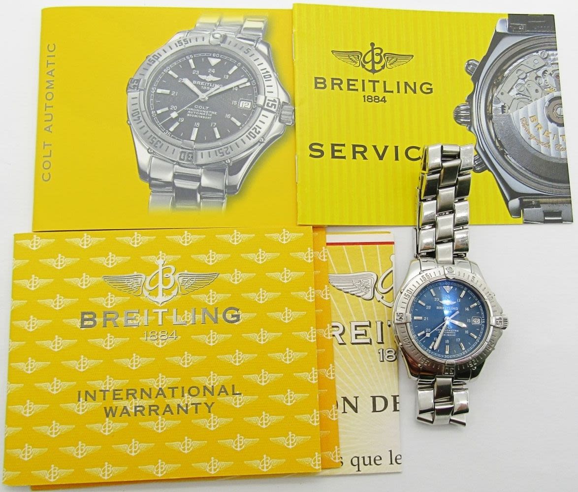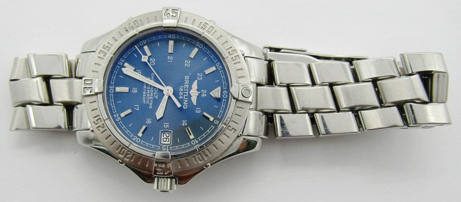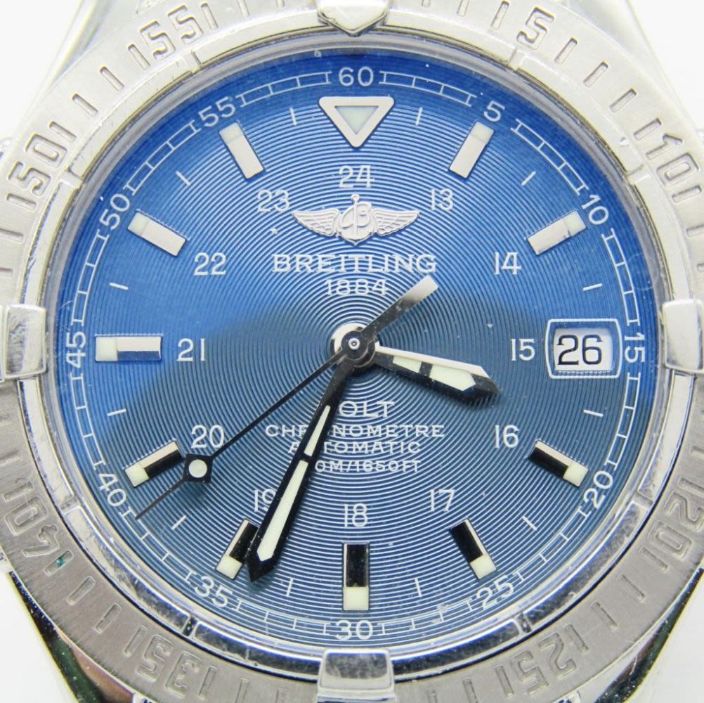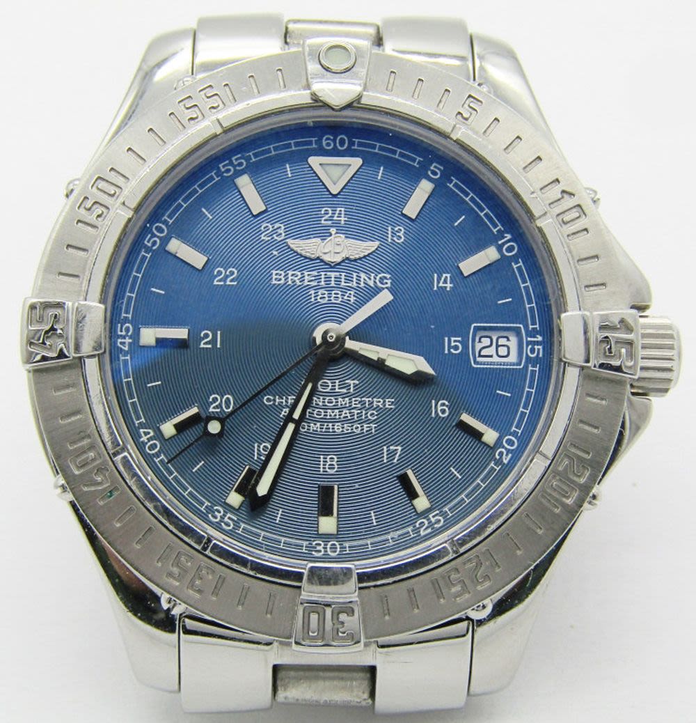 Ref A17350. Perfect Blue Dial & Hands (24 Hours) 38mm Stainless Steel Case And Bracelet. Breitling Cal 17 Movement (ETA) Complete With All Books Chronometer Certificate.
