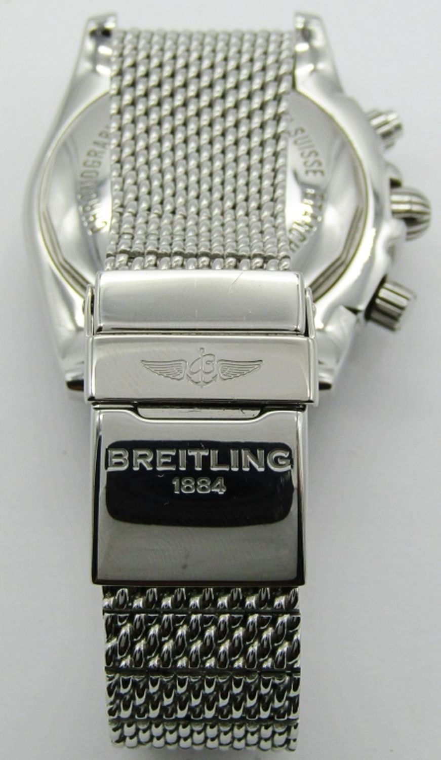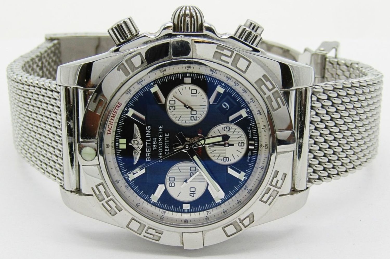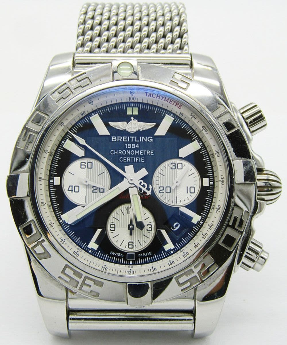 Ref AB 0110. 44mm Diameter. Perfect Black Dial & Hands. With Heavy Breitling Mesh Milan Deployment Bracelet. Complete With All Boxes, Booklets, Hang Tags, Warranty, Ect.