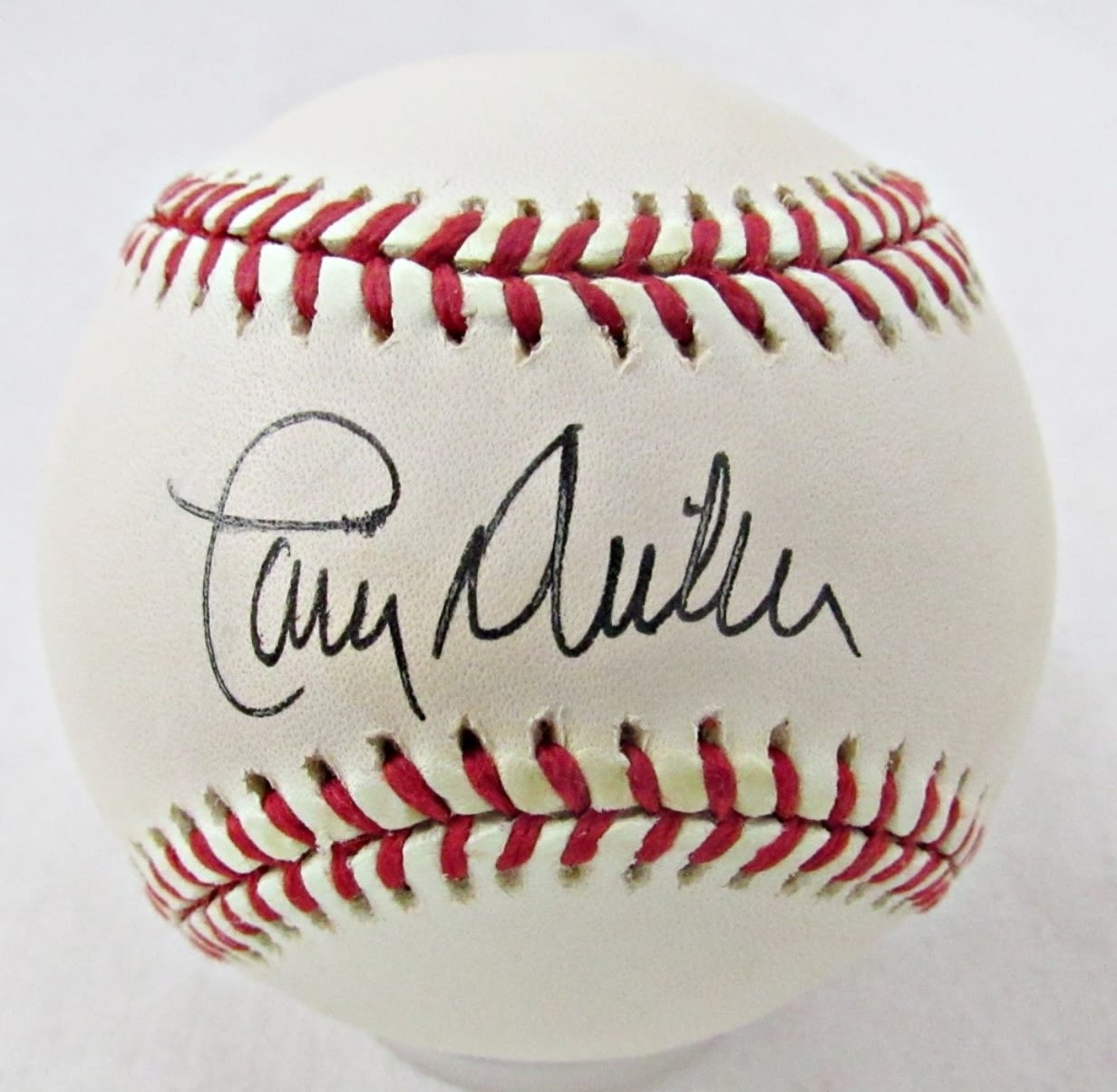 LARRY SUTTON AUTOGRAPHED MAJOR LEAGUE BASEBALL IN HOLDER; NO COA
