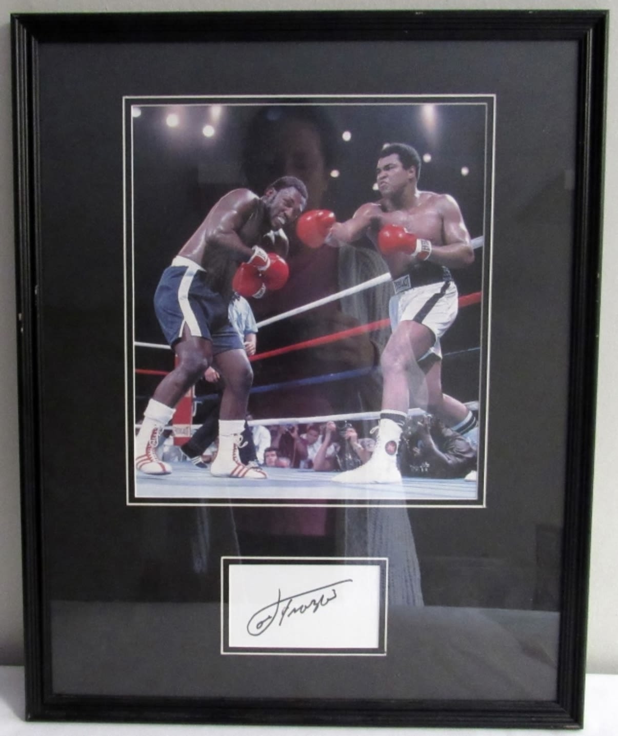 Joe Frazier & Muhammad Ali Photo – Autographed by Joe Frazier with JSA CERTIFICATE; 21 x 17 Frame