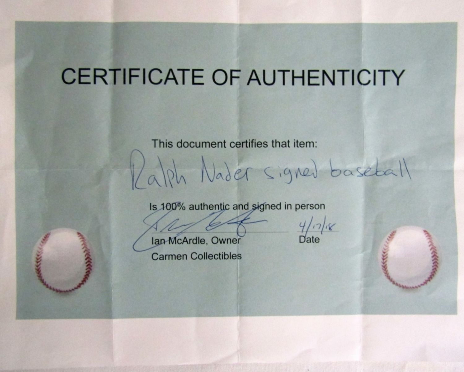 John Kerry – COA, Ralph Nader – COA, Rudy Guiliani, Condeleezza Rice, V.P. Al Gore – COA, Tony Blair, Marco Rubio – COA, Mitt Romney, John Mccain – COA, Sarah Palin – COA, Billy Gardell, Bernie Sanders; In “Home Plate Style” Display Case!