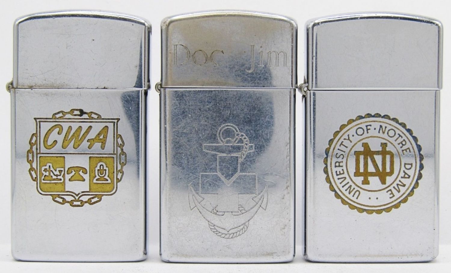 1966 CWA Telephone Communications Emblem; 1980 University of Notre Dame; 1980 Navy “Doc Jim”; All Used Conditions.