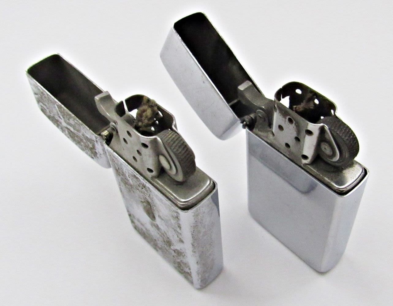 1984 SLIM STYLE SILVER TONE ZIPPOS; USED VERY GOOD OVERALL CONDITION