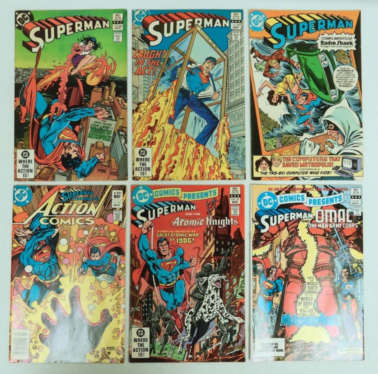 SUPERMAN ISSUES #382-383; JULY 1980 ISSUE; ACTION COMICS #541; OMAC #61; ATOMIC KNIGHTS #57