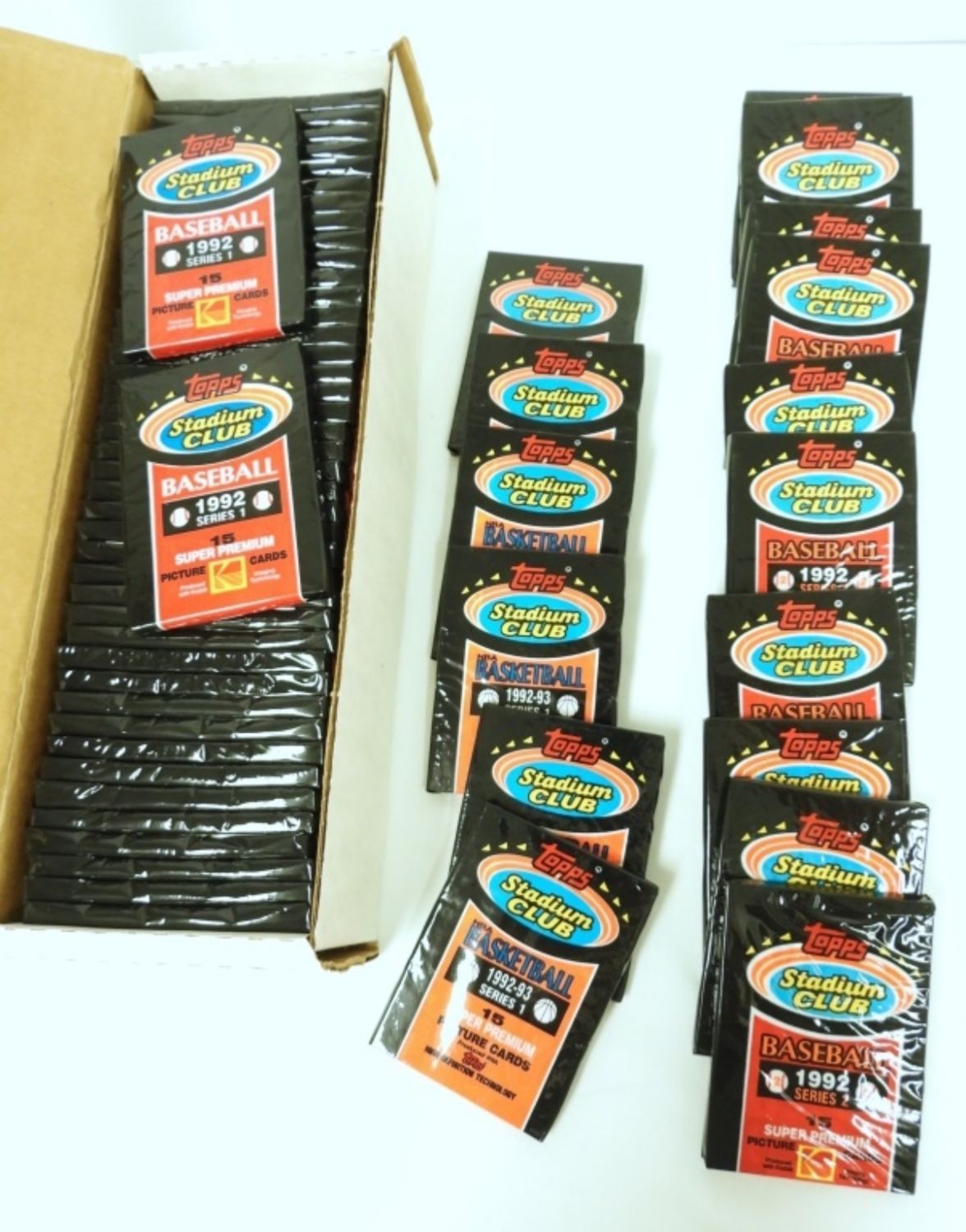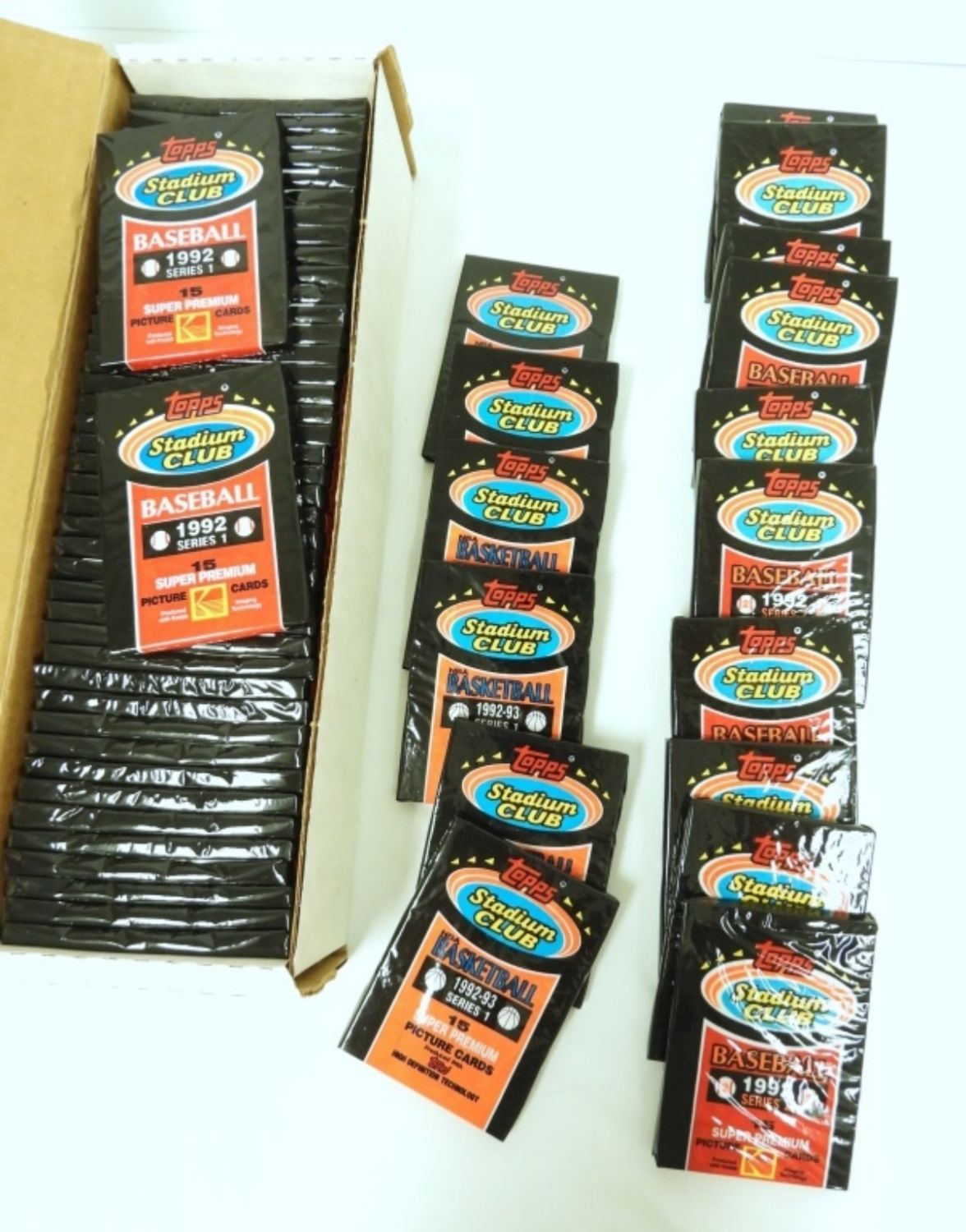 (43) 1992 STADIUM CLUB SER 1 PKS; (10) 1992 STADIUM CLUB SER 2 PKS, (6) 1992/93 STADIUM CLUB SER 1 BASKETBALL PKS – ALL SEALED
