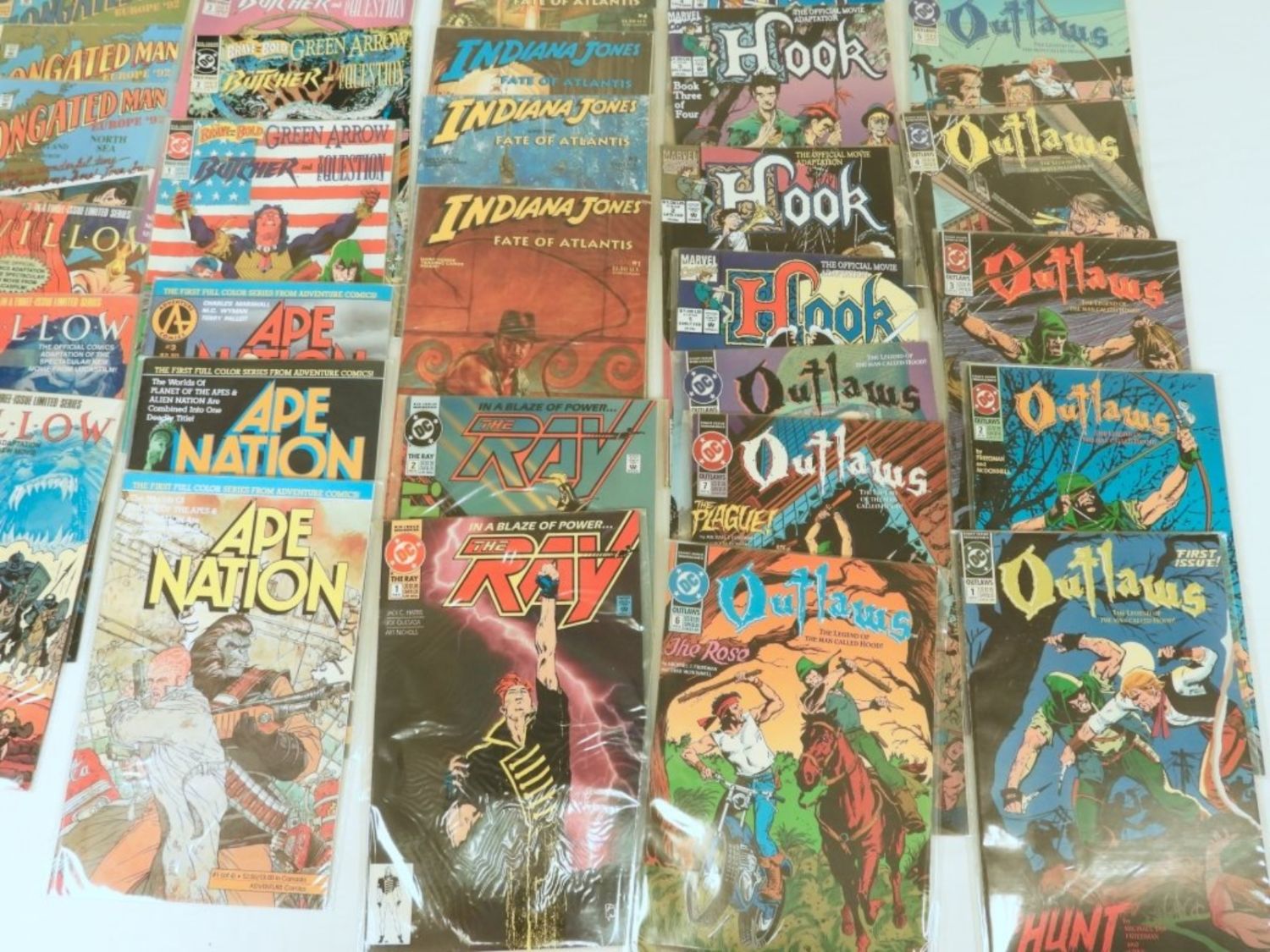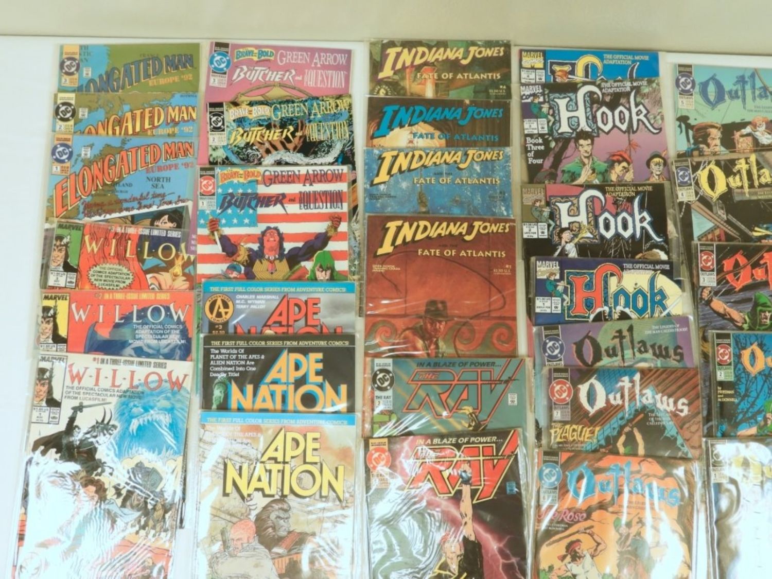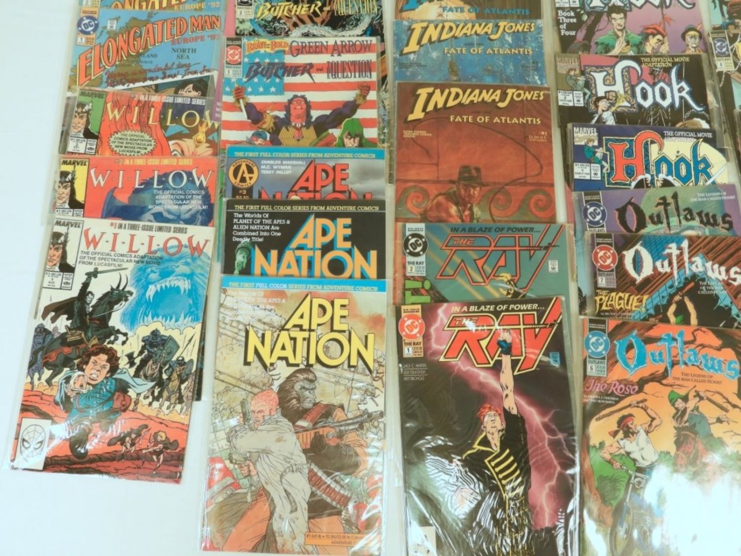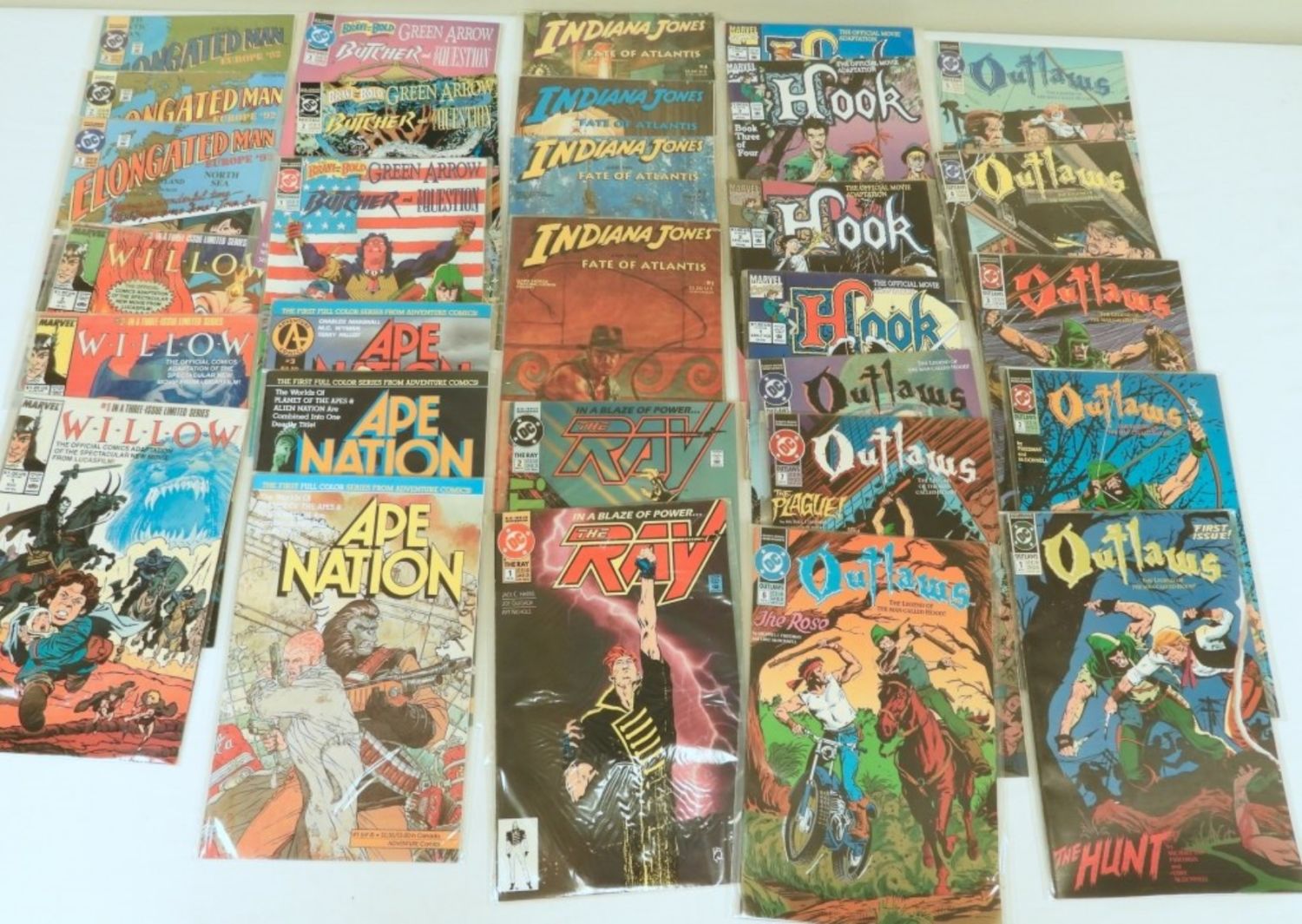 ELONGATED MAN #1-3, WILLOW #1-3, APE NATION #1-3, THE RAY #1&2, OUTLAWS #1-8, HOOK #1-4, BRAVE & BOLD #1-3 – NICE DC & MARVEL MOSTLY SLEEVED LOT (30 TOTAL)