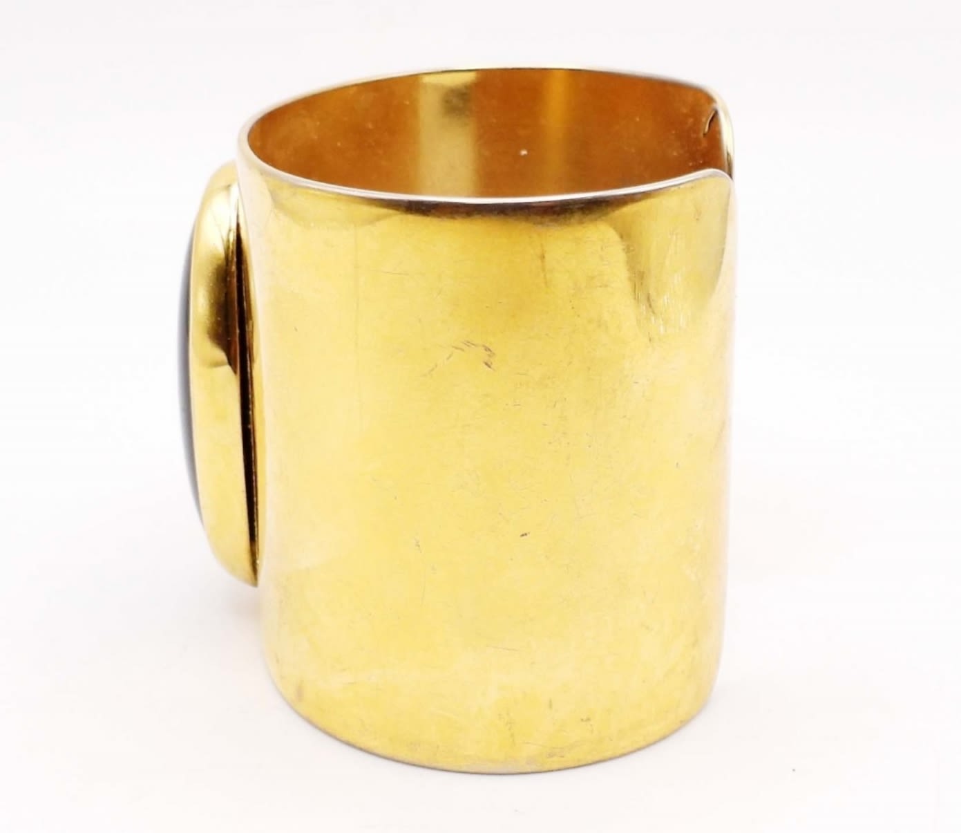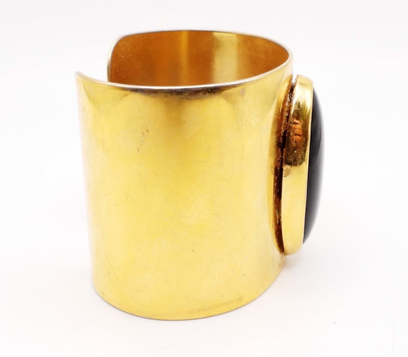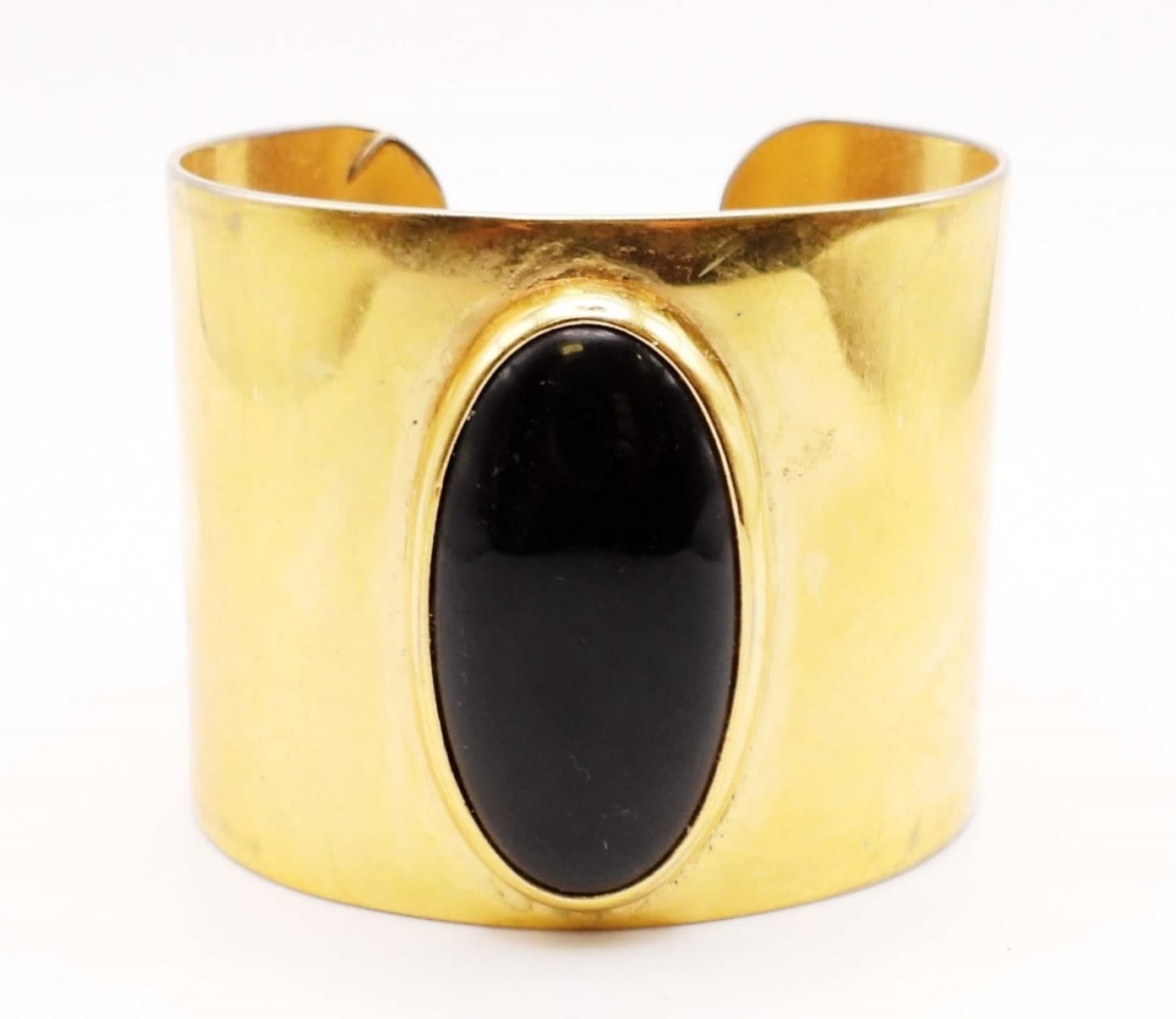 6IN WITH GAP, GOLD TONE, WITH A BLACK ONYX STONE IN THE MIDDLE, STAMPED MONET