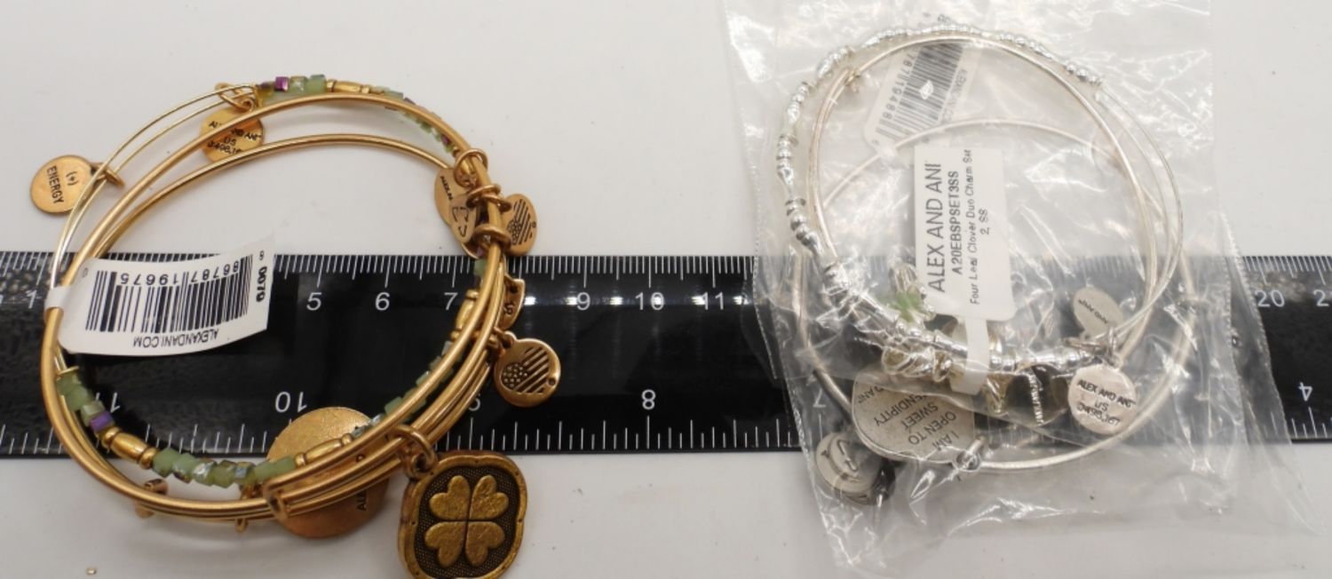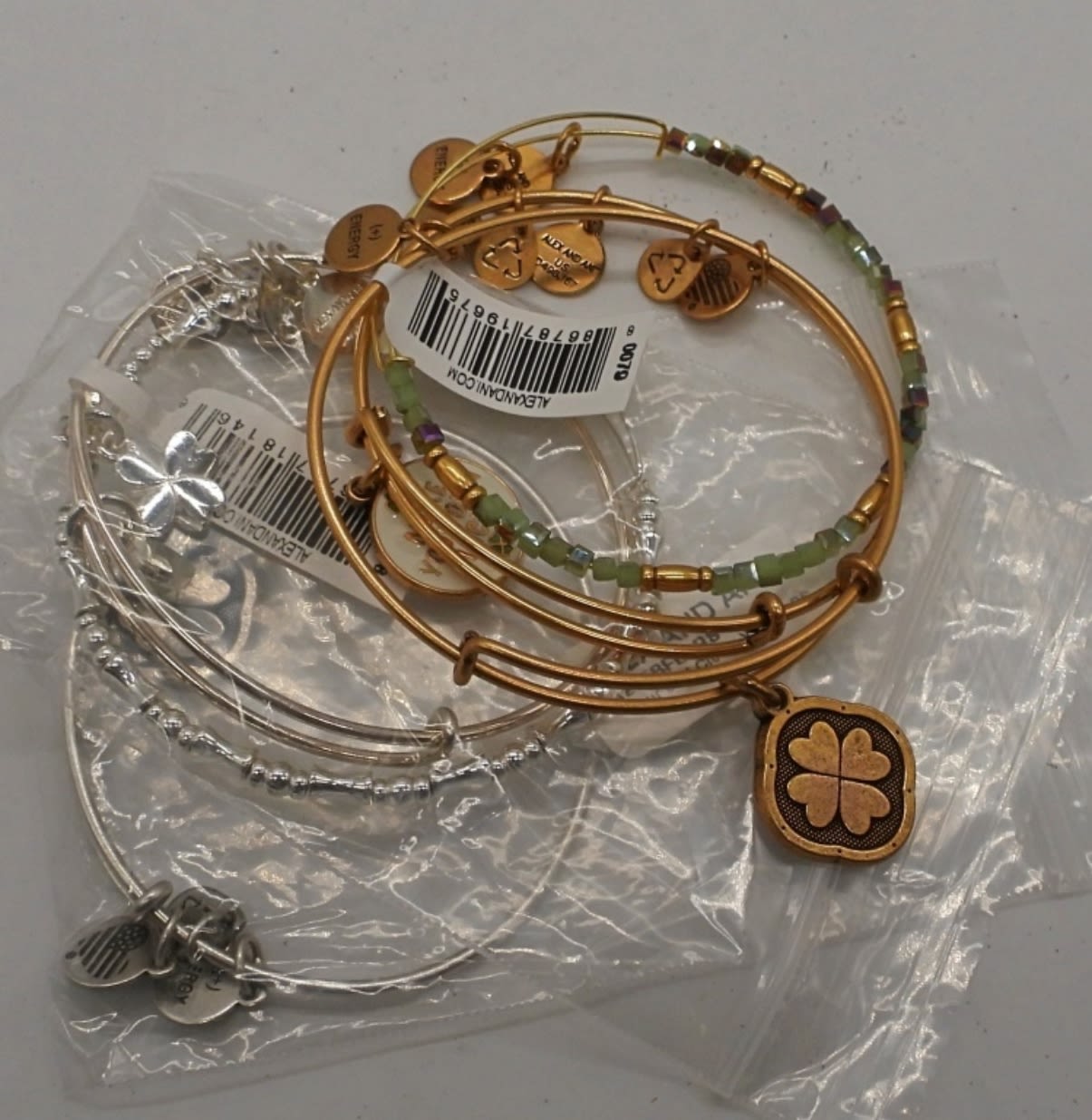 3IN WIDE, 3 GOLD TONE WITH CLOVER CHARM AND A “MAKE YOUR OWN LUCK” CHARM, 3- SILVER TONE WITH CLOVER CHARMS AND SILVER BEADING, ALL STAMPED WITH MAKER