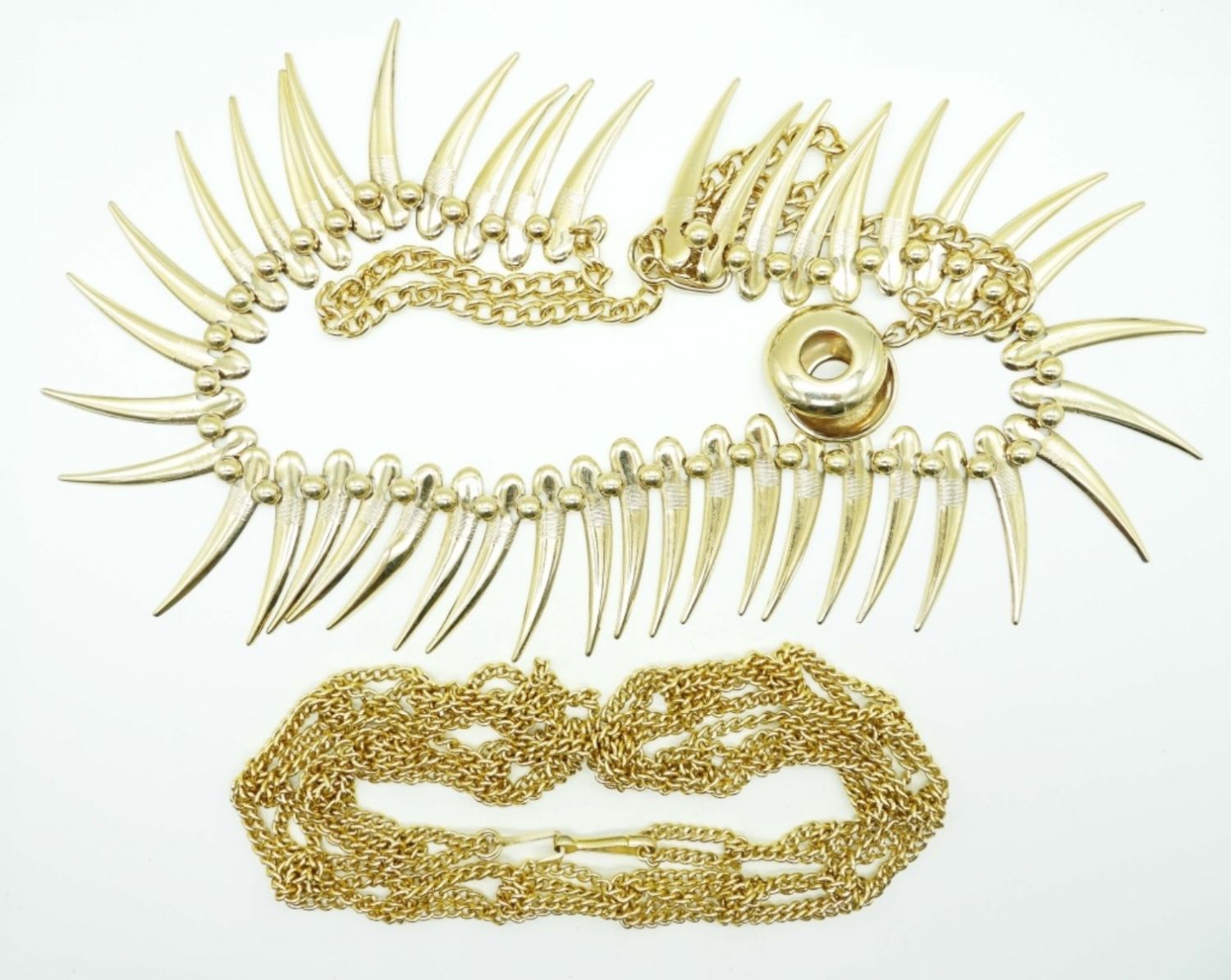 1-37IN LONG, WHEAT CHAIN WITH A HOOK CLASP, 1 SPIKE BELT, 53IN LONG WITH A HOOK CLASP