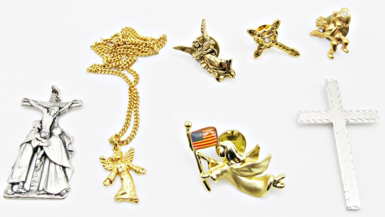 3 ANGEL PINS, AND A CROSS PIN