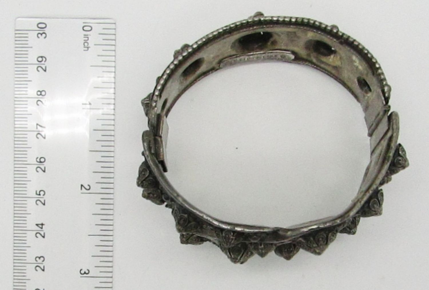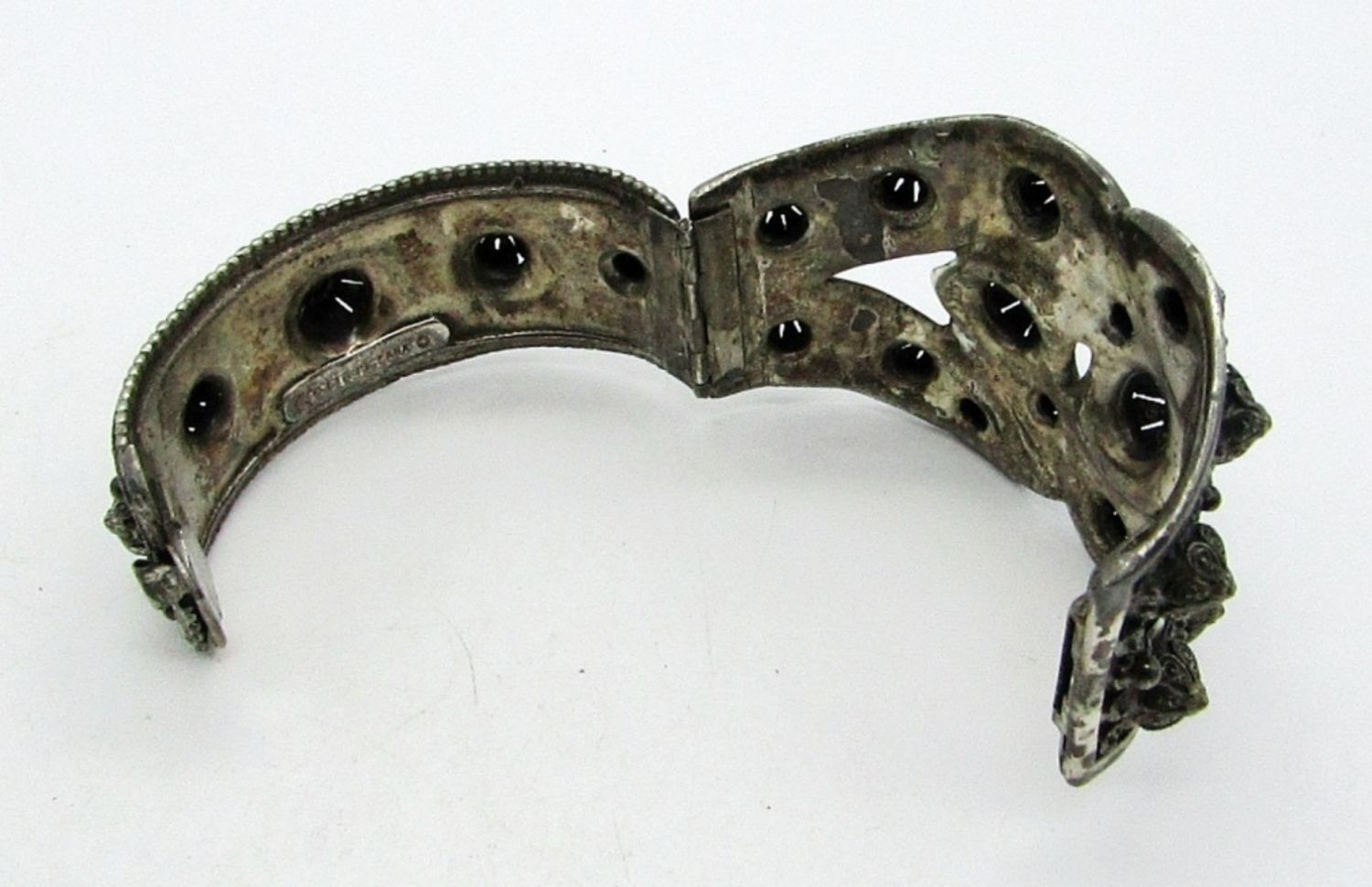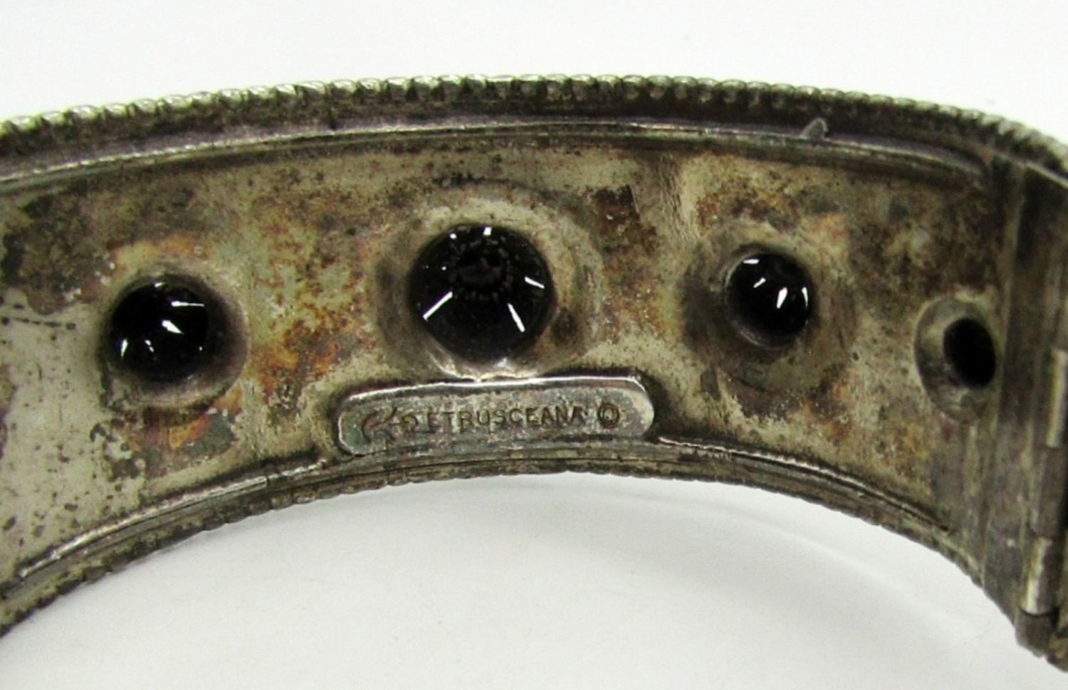 SILVER TONE, STAMPED WITH ETRUSCEANA ON THE INSIDE, 7IN AROUND CLOSED, STUNNING