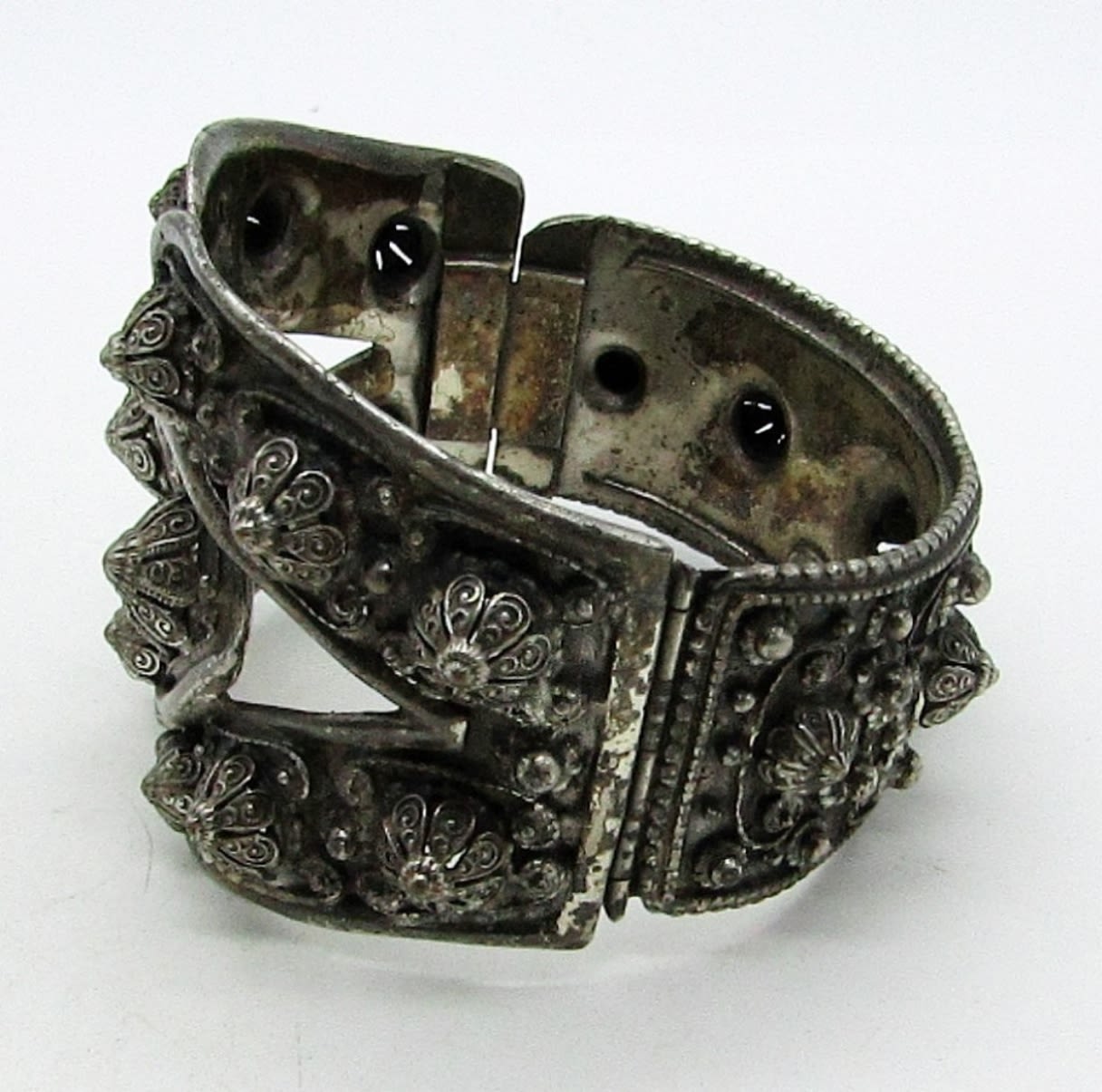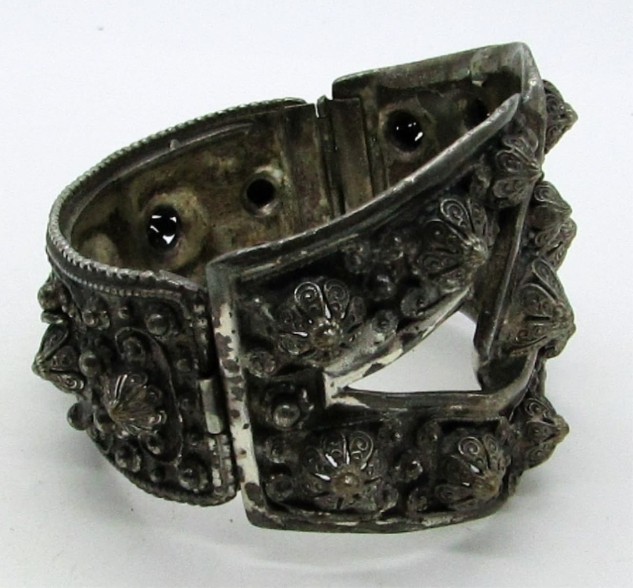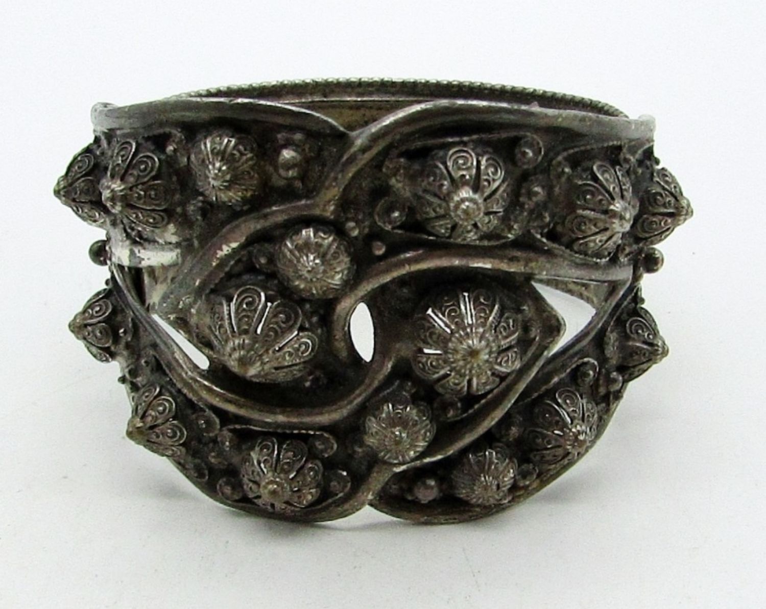 SILVER TONE, STAMPED WITH ETRUSCEANA ON THE INSIDE, 7IN AROUND CLOSED, STUNNING