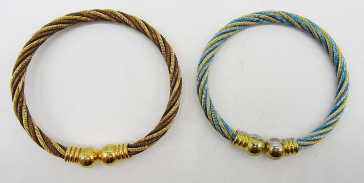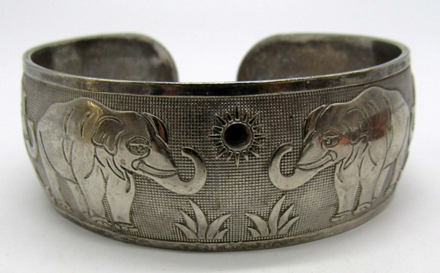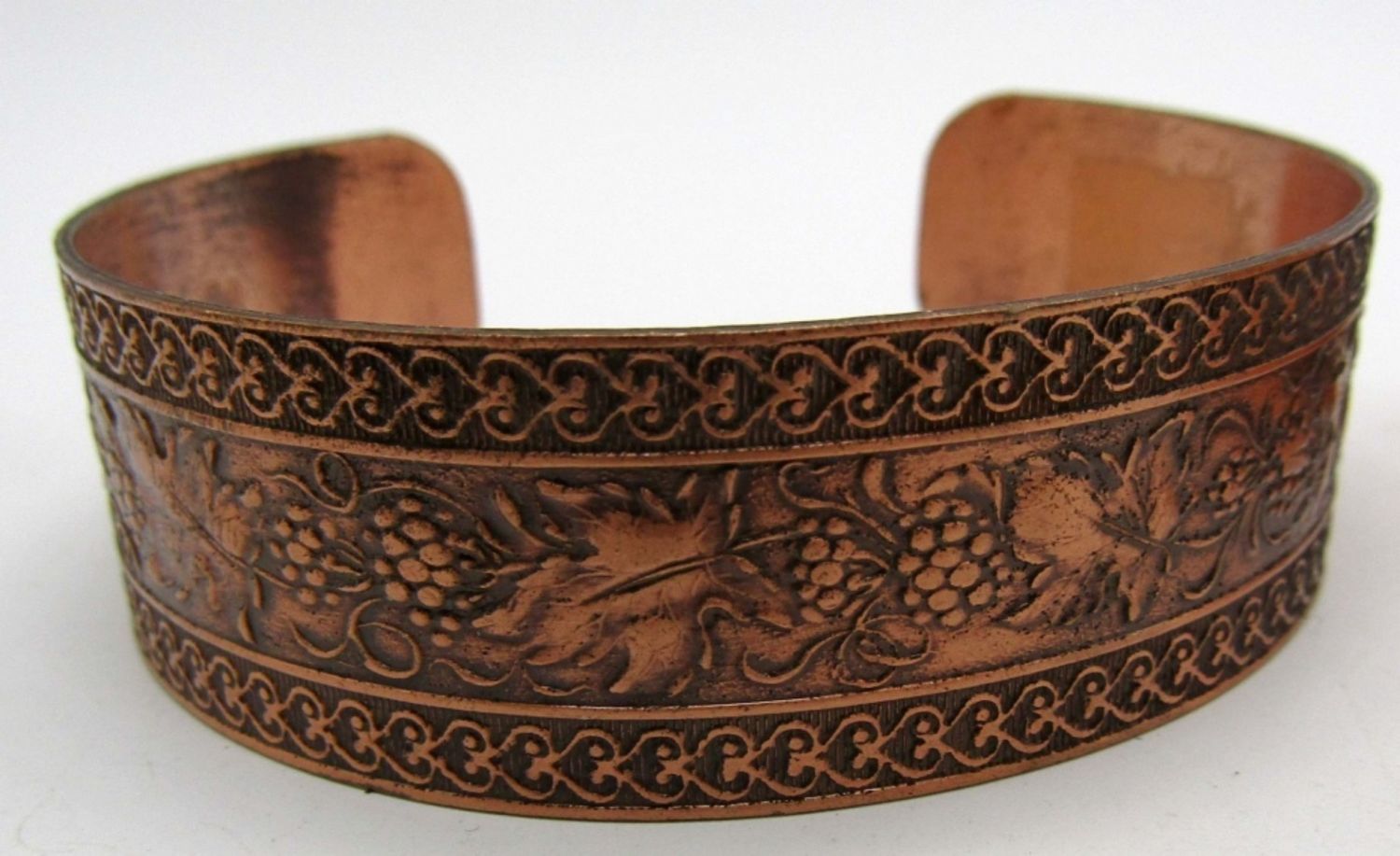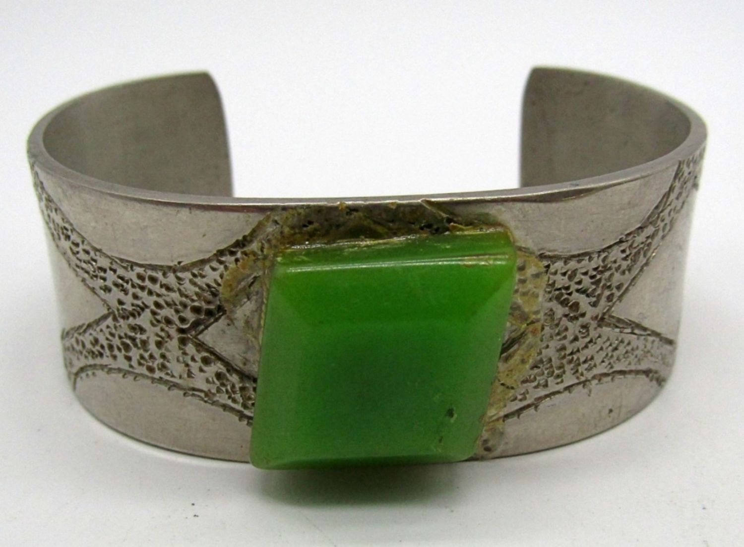 DIFFERENT STYLES 2- copper tone stamped cuffs,two sliver cuffs one with a natural green stone,1 gold tone cuff, 2 wired bar cuffs