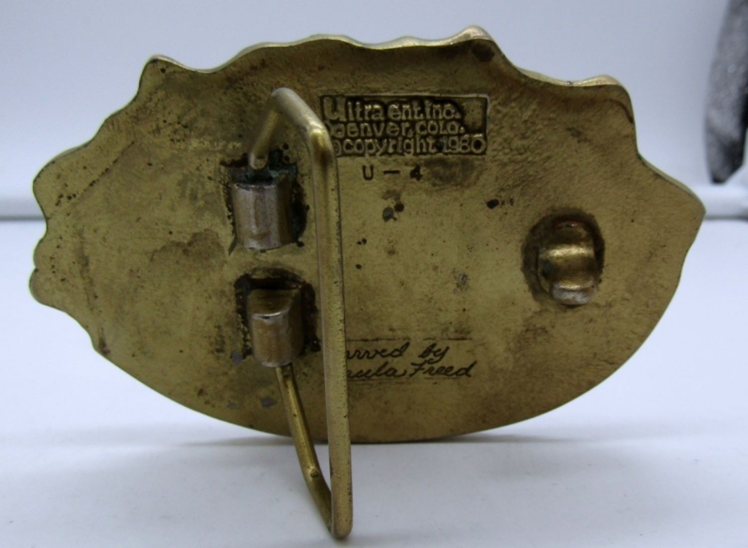 GOLD TONE, ULTRA ENT. INC PENYER COLO. @COPY RIGHT 1980 STAMPED ON THE BACK, ALSO CARVED BY PAULA FREED