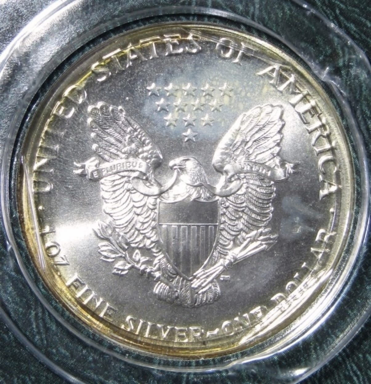 CORNER OF PACK DAMAGED. AMERICAN SILVER EAGLE 1ozt .999 PURE SILVER