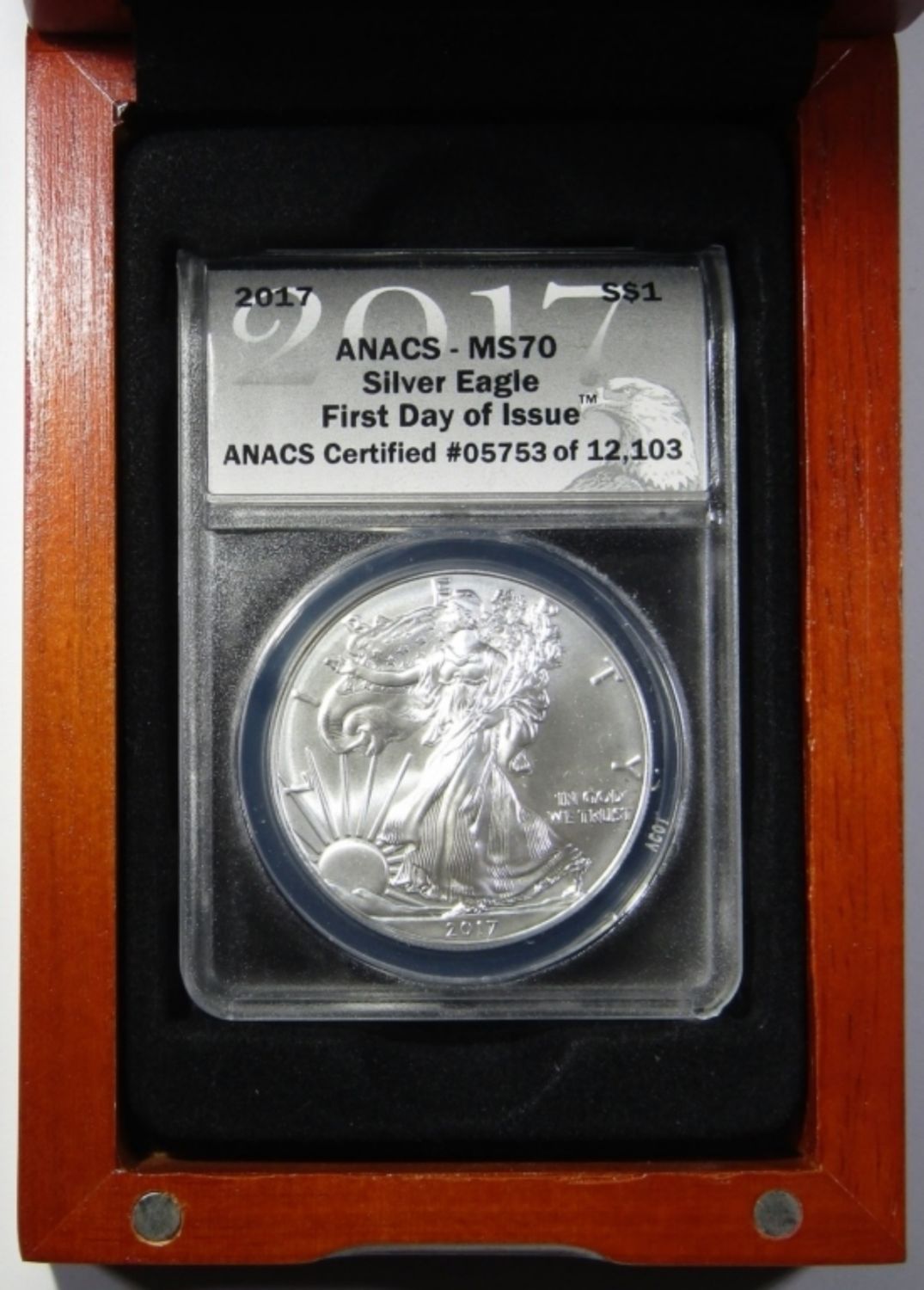 FIRST DAY OF ISSUE. IN WOODEN DISPLAY CASE.