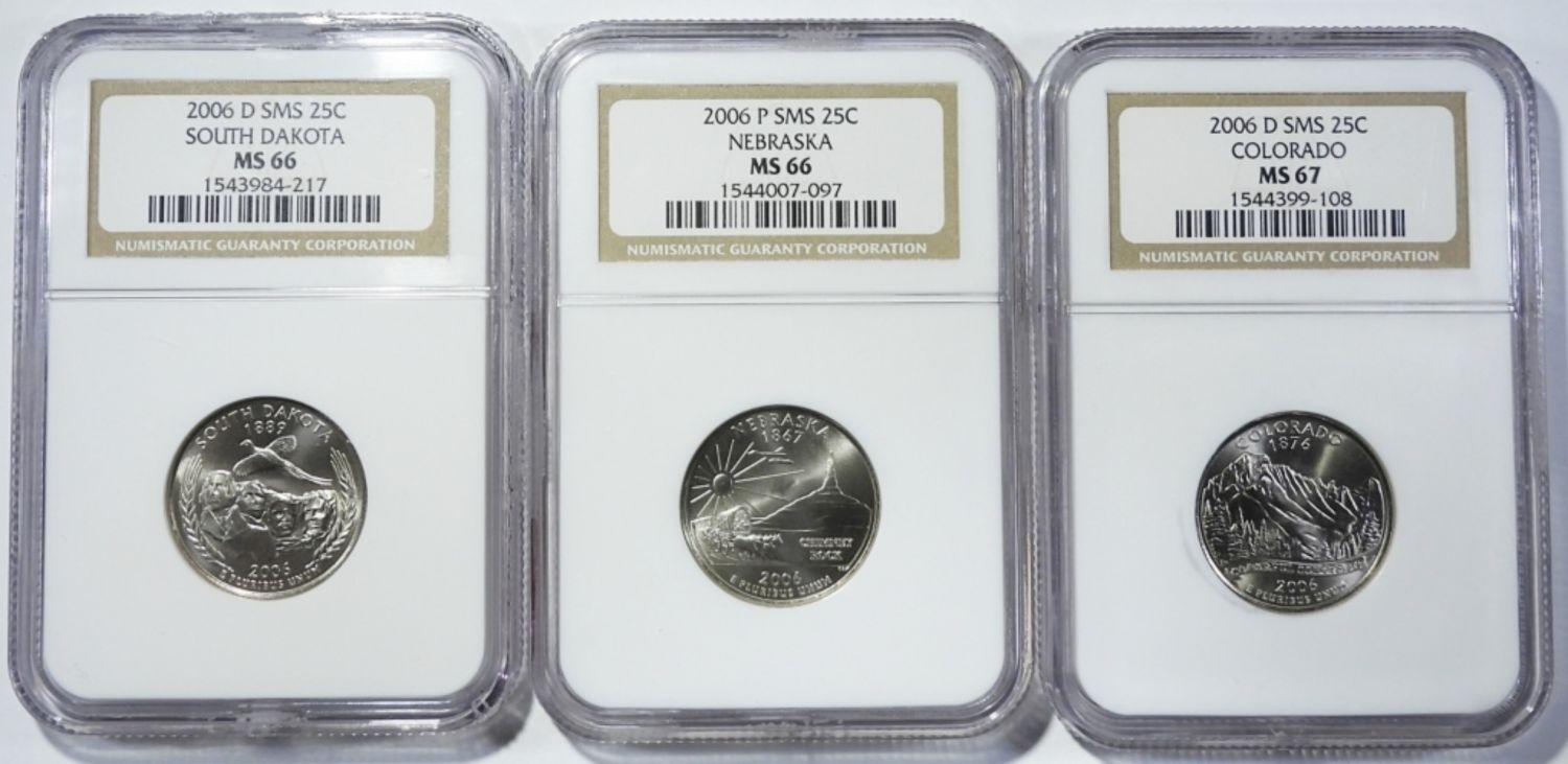 2006-P NEBRASKA MS-66, 2006-D COLORADO MS-67, & 2006-D SOUTH DAKOTA MS-66.