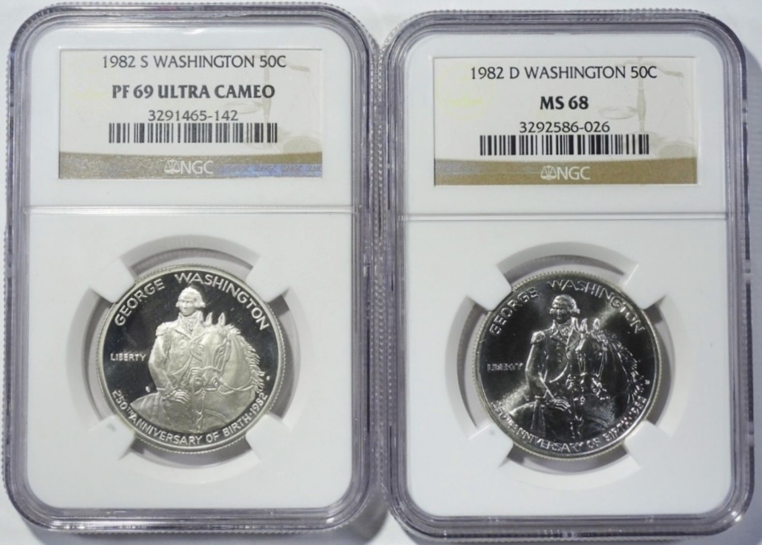 1982-D MS-68 & 1982-S PF-69 ULTRA CAMEO COMMEM HALVES