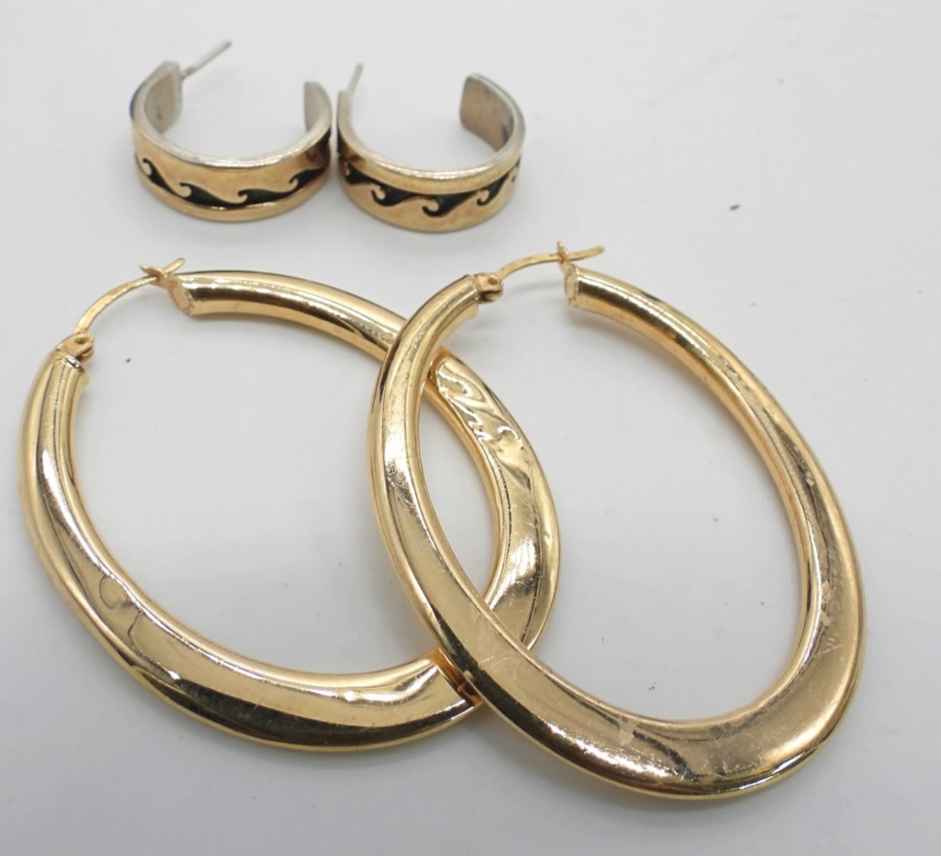 LARGE HOOPS GOLD PLATED STERLING; 1 HOPI (9 DWT)