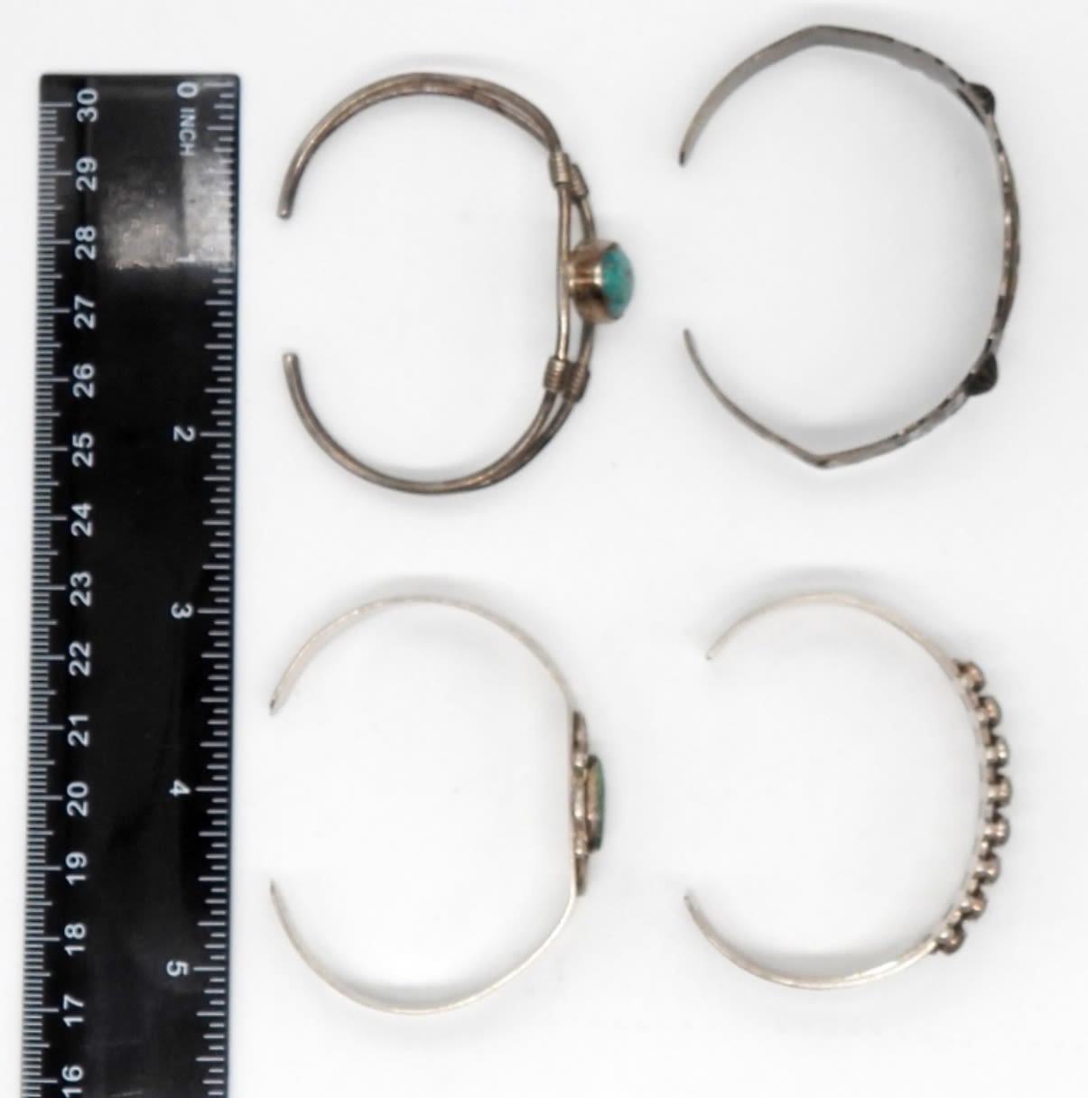 39.4 DWT; SOUTHWEST STYLE CUFF BRACELETS TURQUOISE STONES, ETCHED AND ENGRAVED; MARKED STERLING